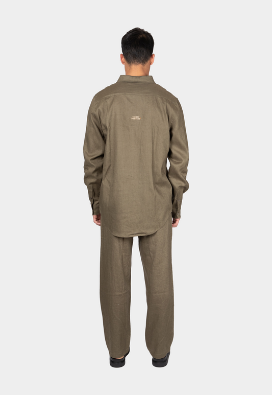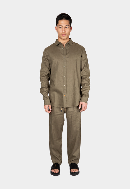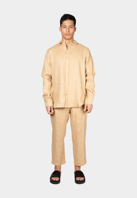 חולצה מכופתרת קצרה פשתן לגברים Linen