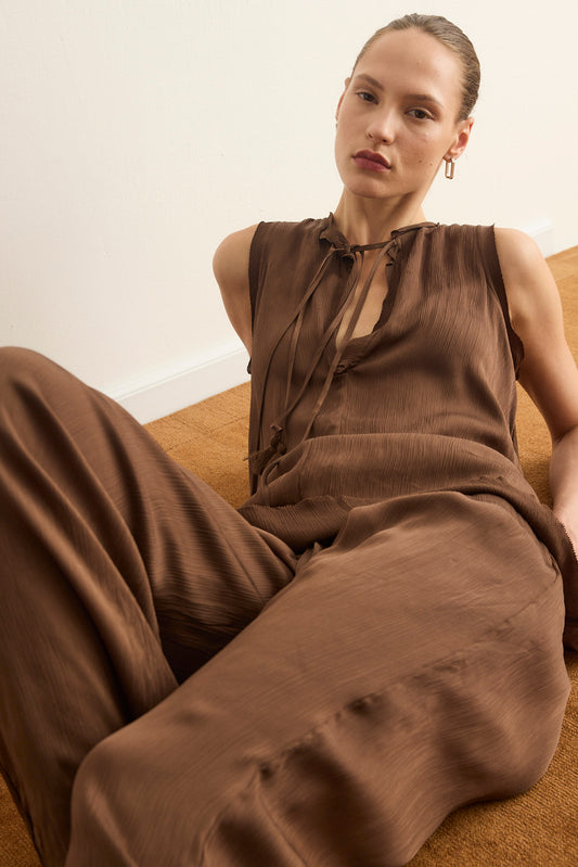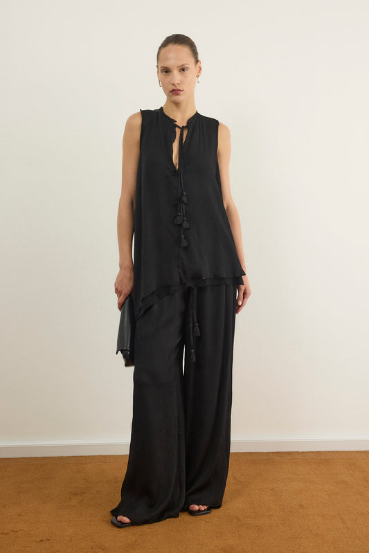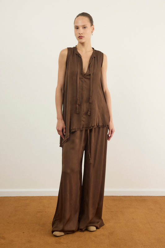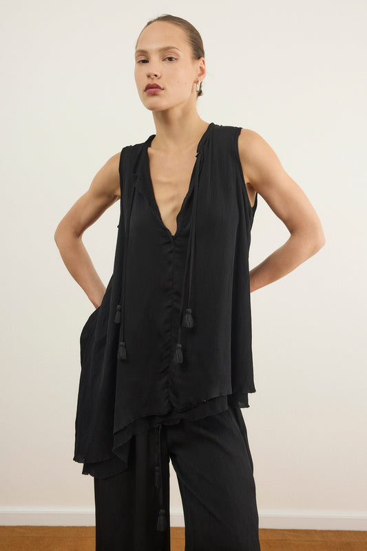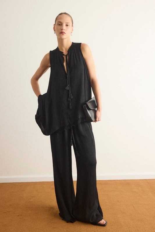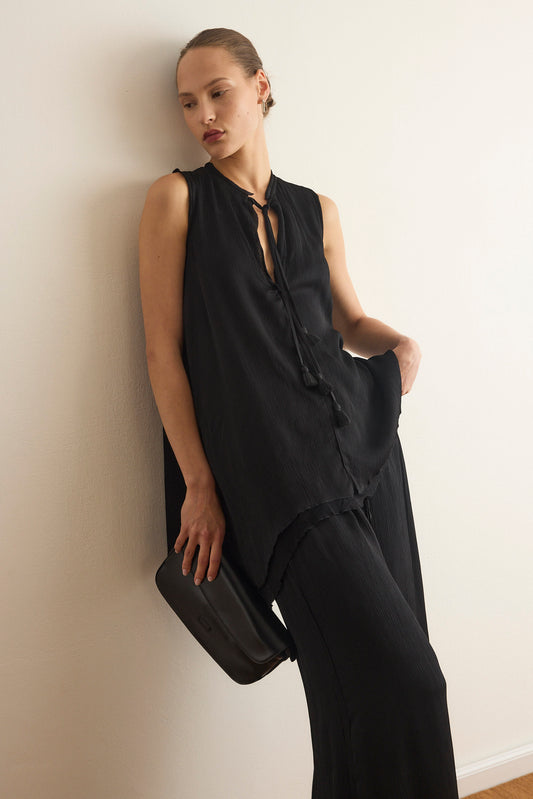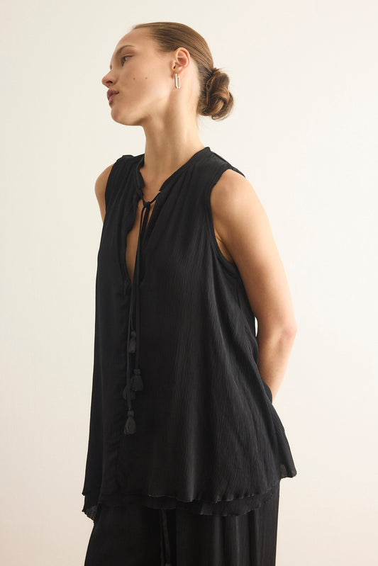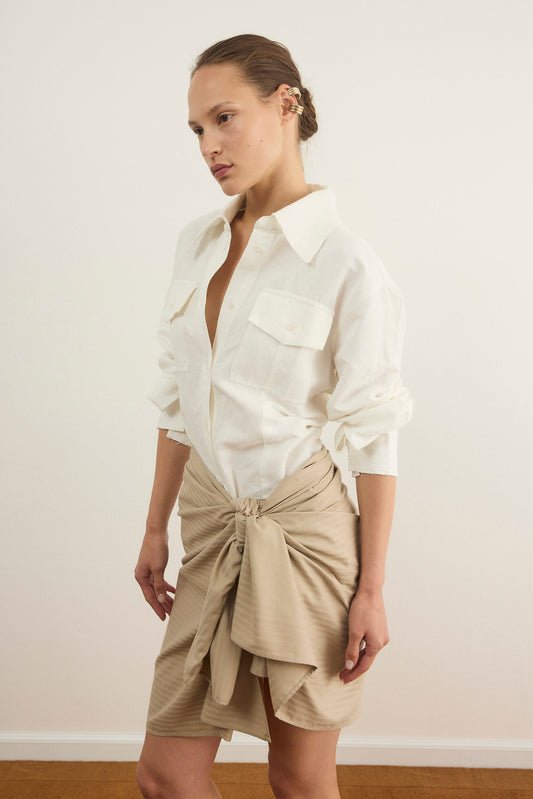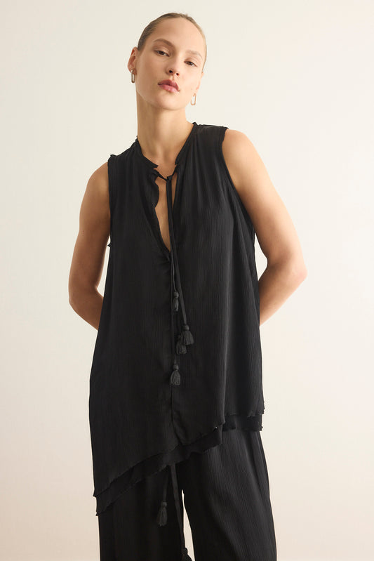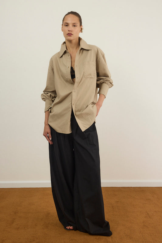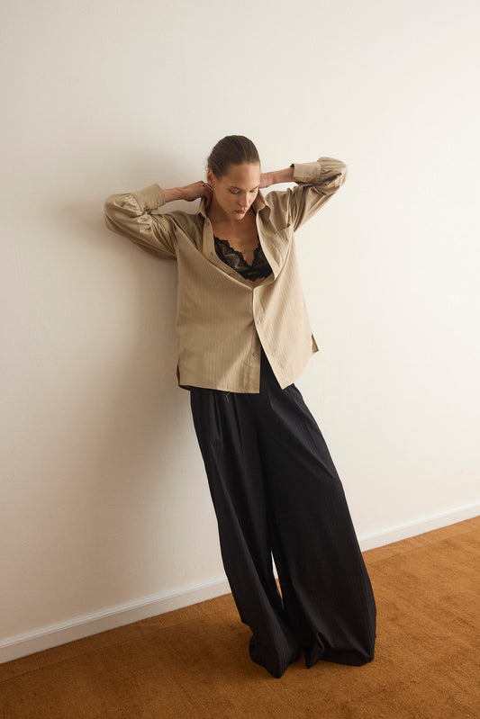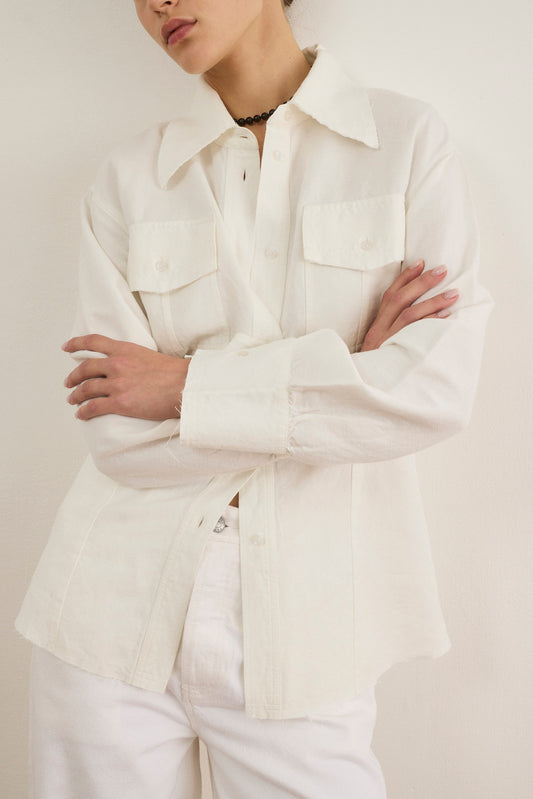 חולצה מכופתרת ארוכה עם צווארון Pleated