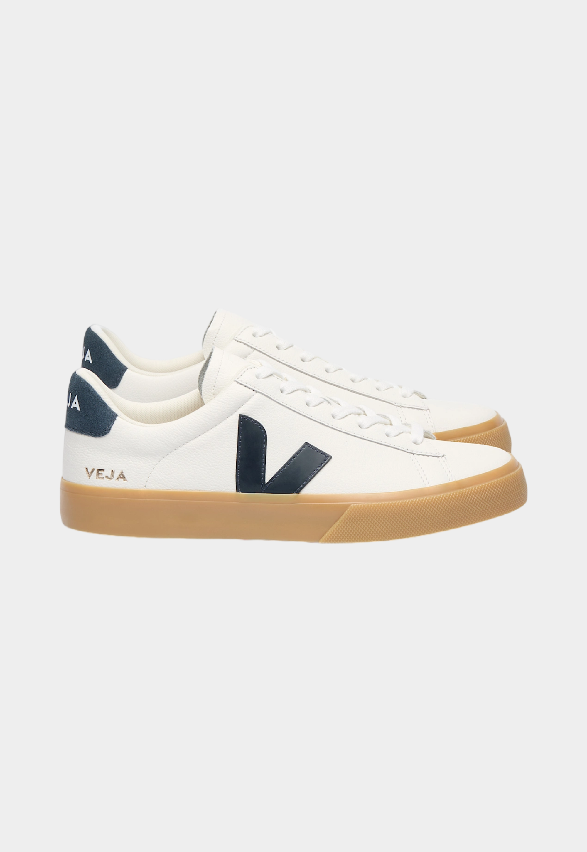 נעלי סניקרס קלאסיות מדגם קמפו של מותג הנעליים וג'ה, עשויות מחומרים אקולוגיים ועמידים. החלק העליון מציג V ממותג והוא עשוי מעור CHROMEFREE, שמעובד בתהליך המפחית את השימוש בכימיקלים, אנרגיה ומים. הסוליה עשויה מגומי ממוחזר מיערות האמזונס.