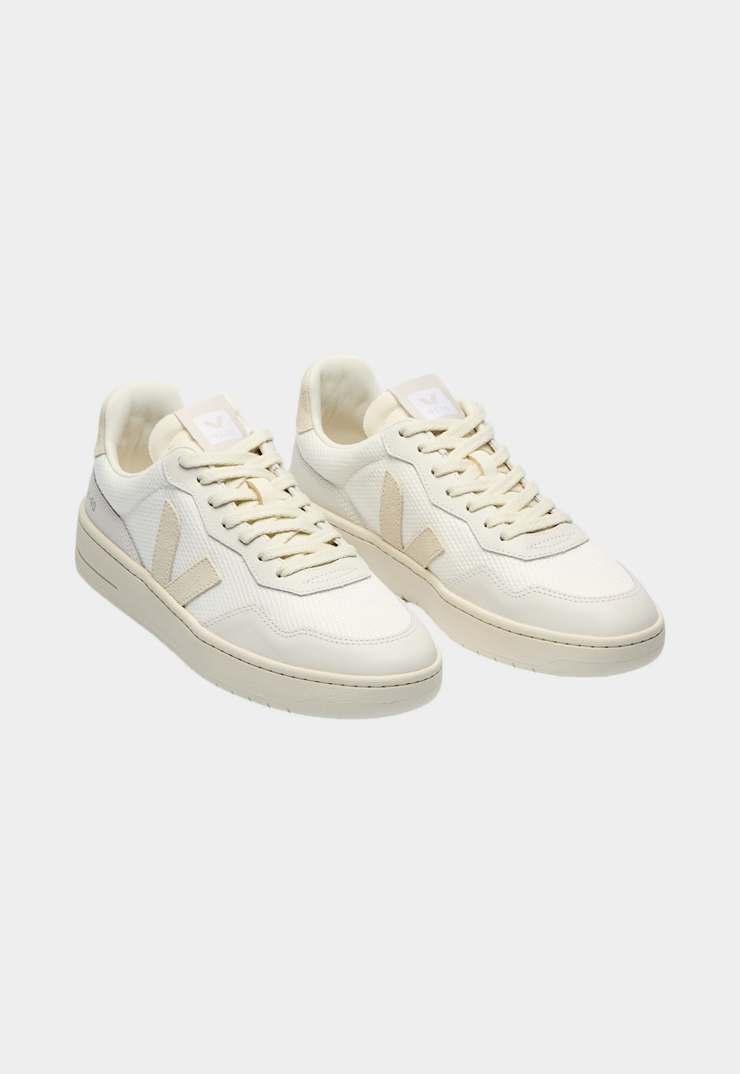 וג'ה מציגים את הדגם החדש המשלב סגנון רטרו עם מודרניות. דגם הV-90, מציע איזון של סטייל ונוחות. הנעליים עשויות עור רך ואורגני, המיוצר באורוגוואי ומעובד בתהליך המפחית את השימוש בכימיקלים, אנרגיה ומים. לנעליים הוי המוכר בצידי הנעל, לוגו בחלק האחורי ושרוכים מכותנה אורגנית.
