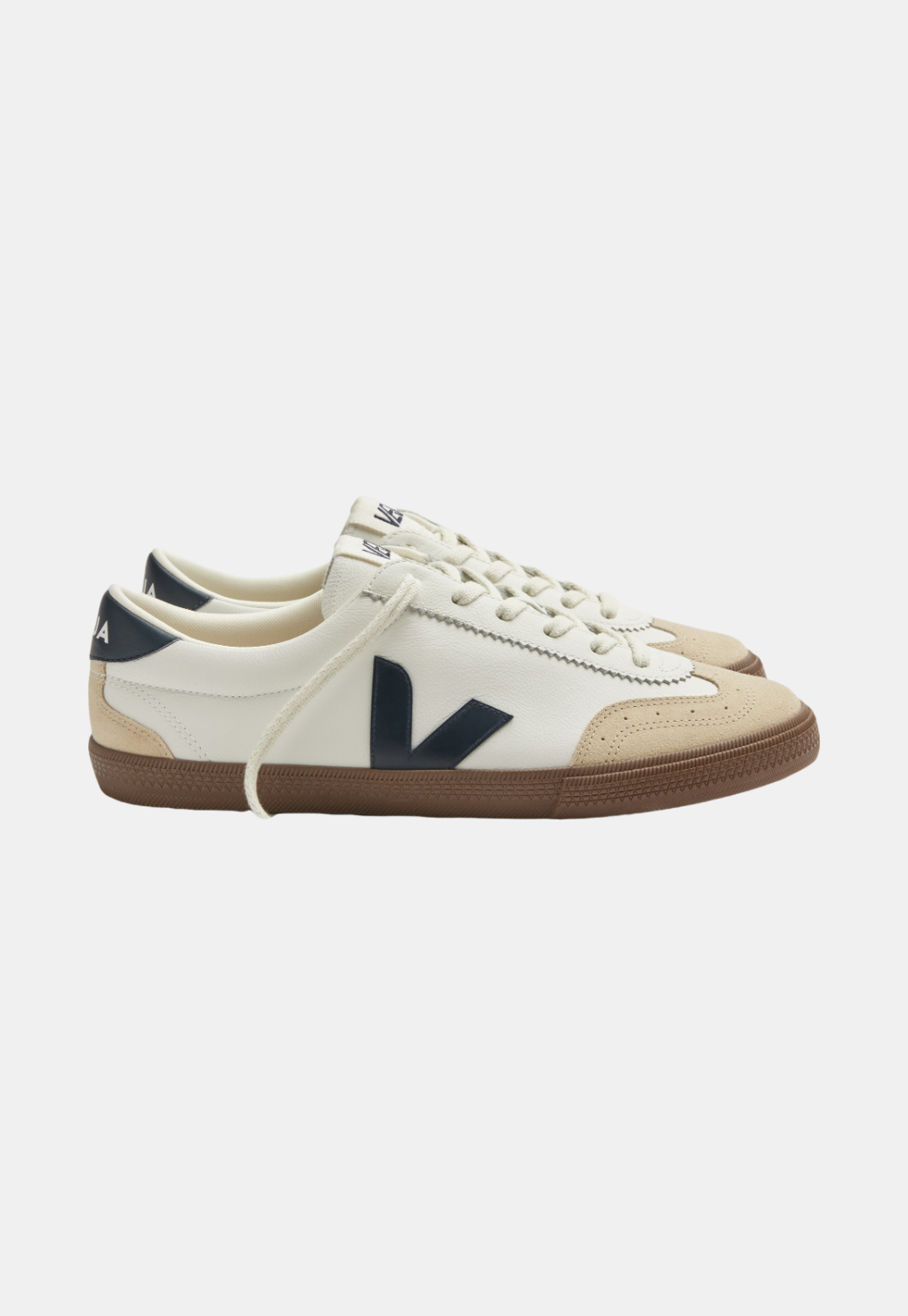 הנעליים עשויות עור בשילוב זמש, עם סוליית גומי שטוחה, ולוגו וי של המותג בצדדים.