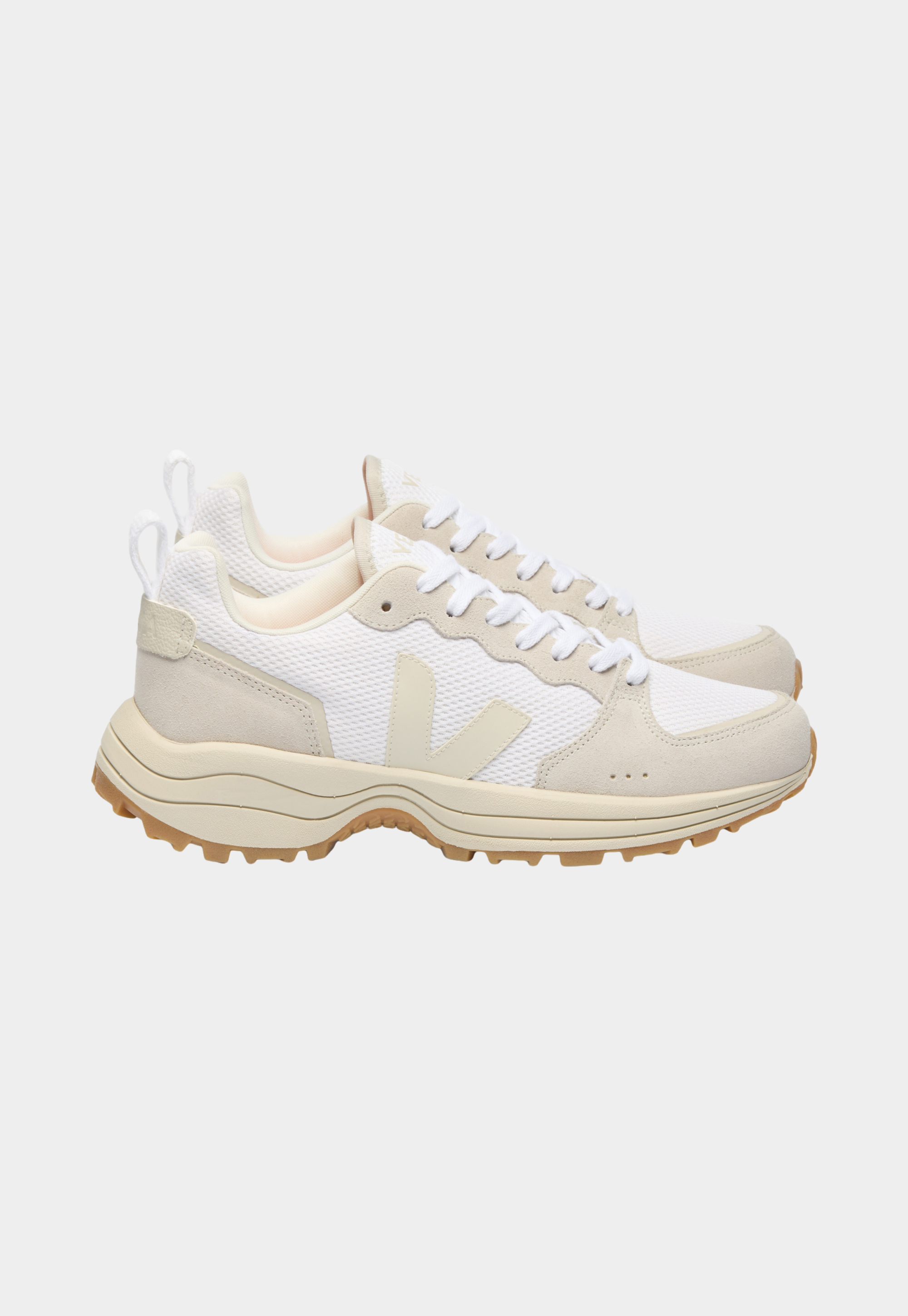 סניקרס לנשים מדגם ונטורי של המותג וג'ה, מציגות לוק ספורטיבי. הנעליים עשויות מרשת בשילוב פאנלים מזמש. סוליה מעט צ'אנקית ומשוננת, ולוגו הוי המוכר של המותג מוצג בשני הצדדים.