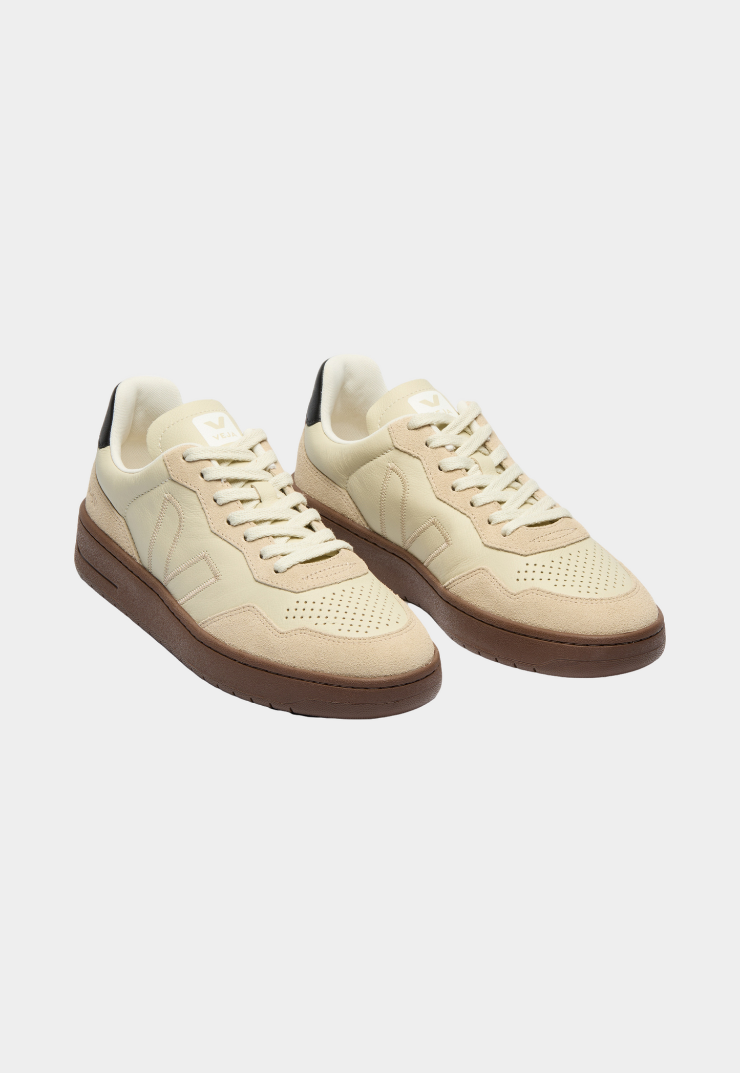 וג'ה מציגים את הדגם החדש המשלב סגנון רטרו עם מודרניות. דגם ה V-90, מציע איזון של סטייל ונוחות. הנעליים עשויות עור רך ואורגני, המיוצר באורוגוואי ומעובד בתהליך המפחית את השימוש בכימיקלים, אנרגיה ומים. לנעליים הוי המוכר בצידי הנעל, לוגו בחלק האחורי ושרוכים מכותנה אורגנית.