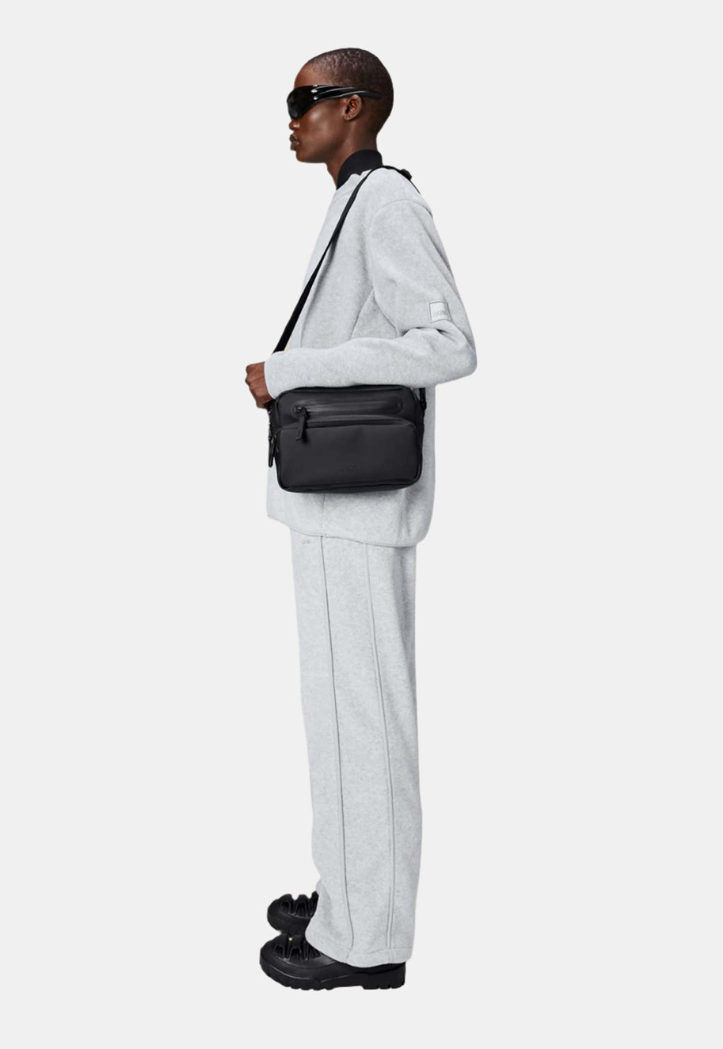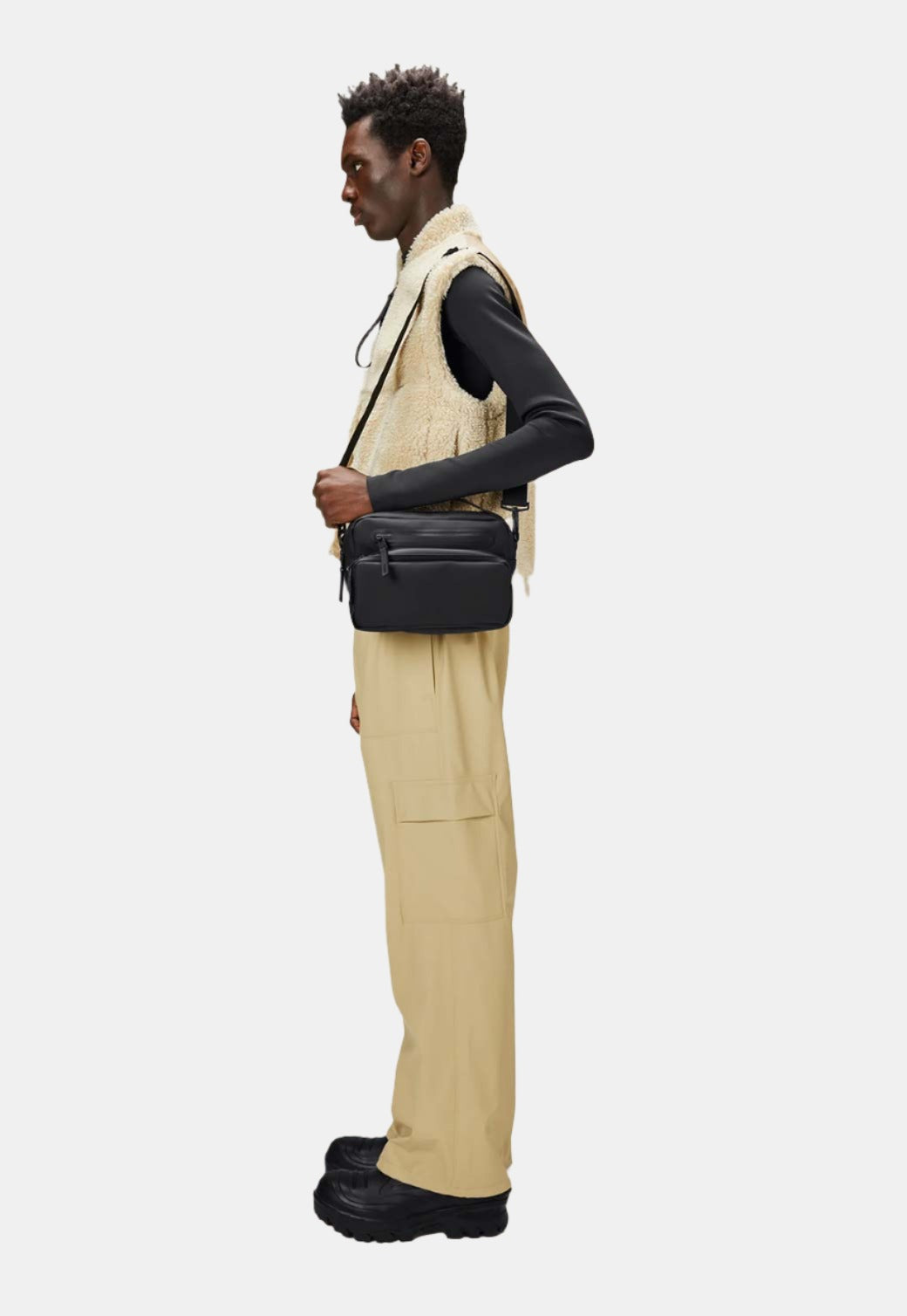 תיק צד מבית המותג ריינס. עשוי חומר עמיד במים בגימור מאט, עם תא מרכזי בסגירת רוכסן ושני תאים נוספים בחזית. לתיק ידית אחיזה בחלק העליון, ורצועה נוספת מתכווננת הניתנת להסרה.