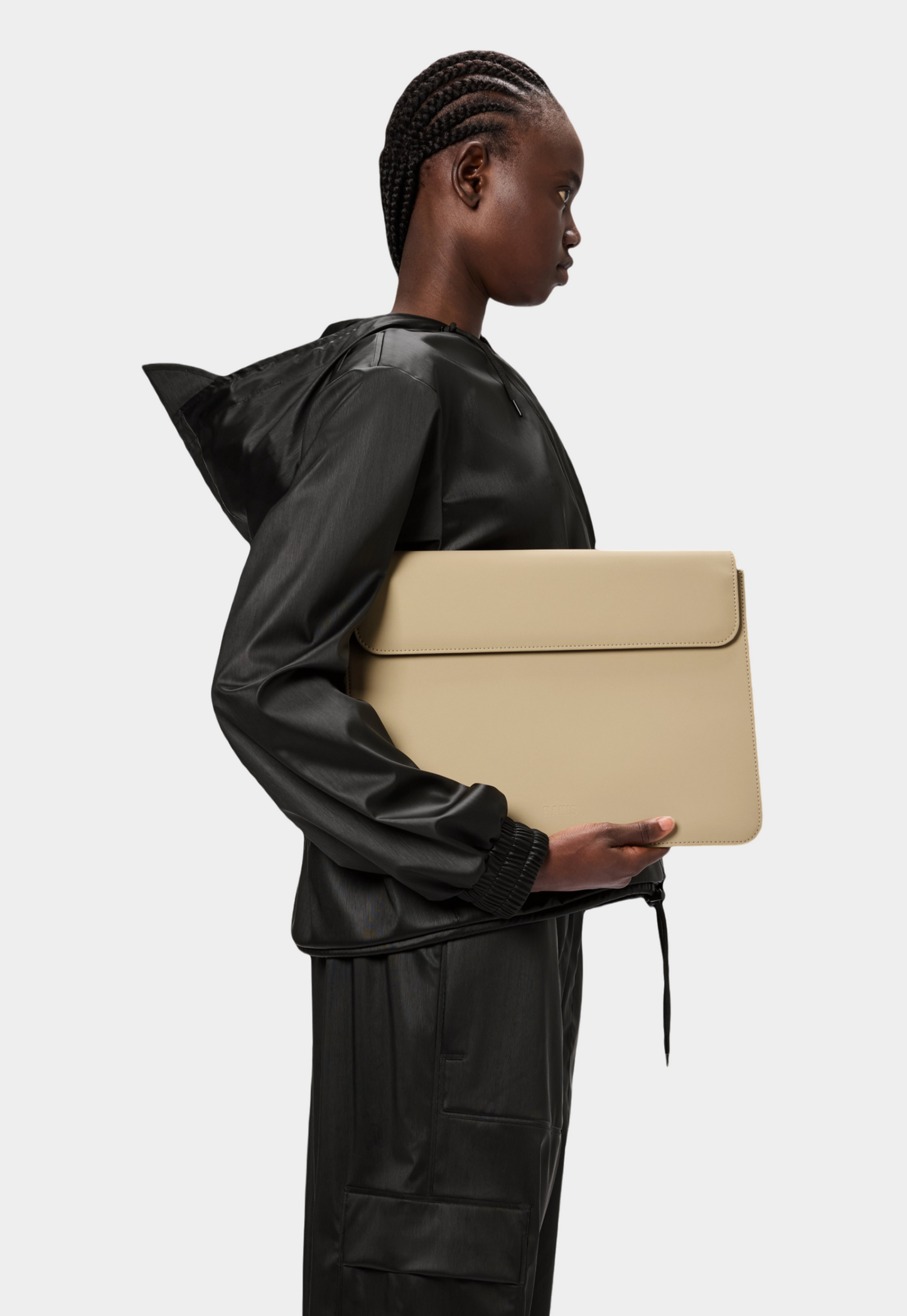 תיק ללפטופ מבית המותג ריינס, בגזרת מעטפה עם לוגו מוטבע של המותג בחזית.