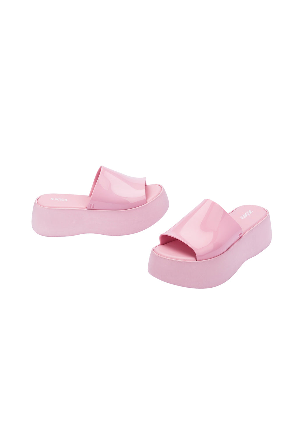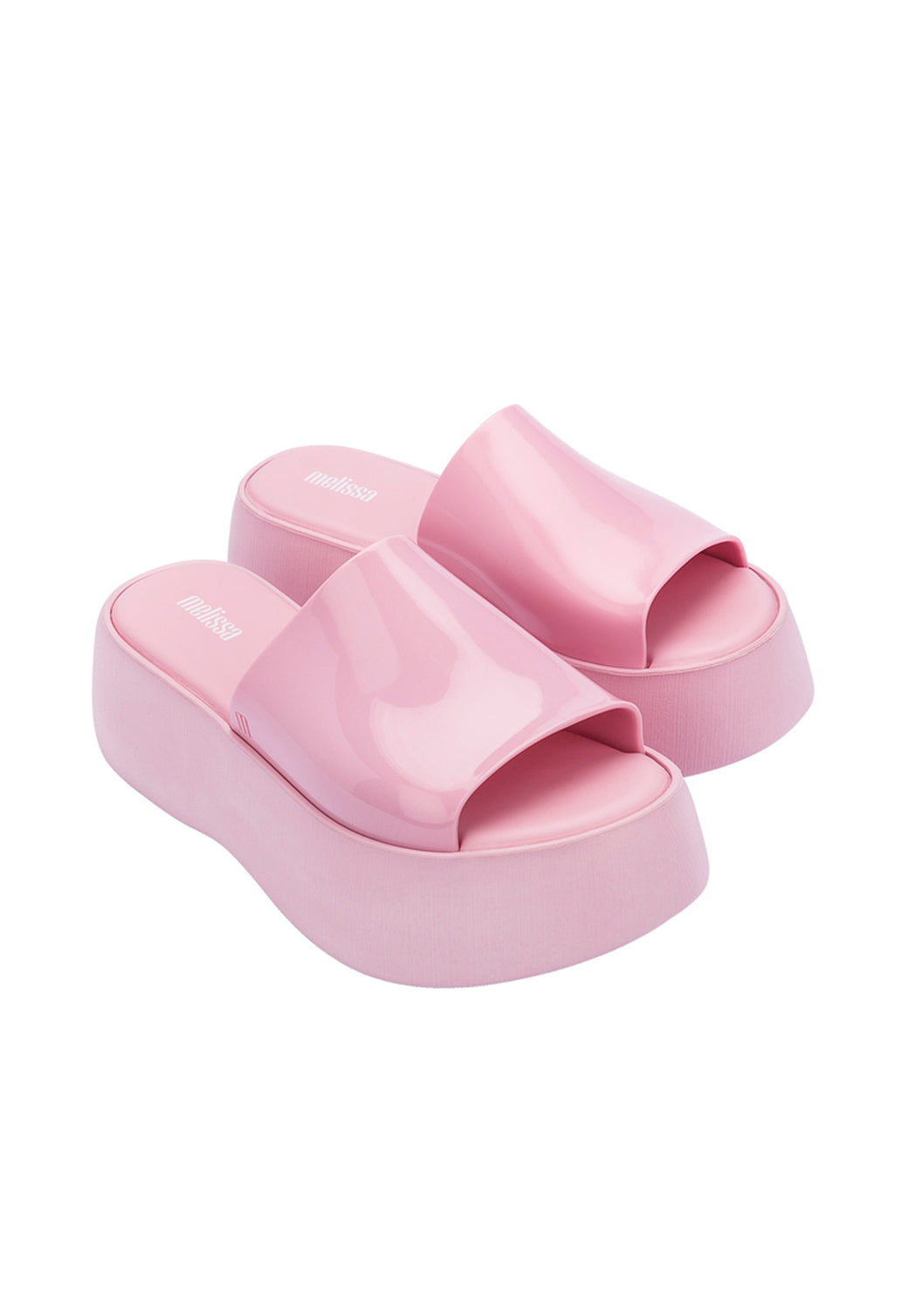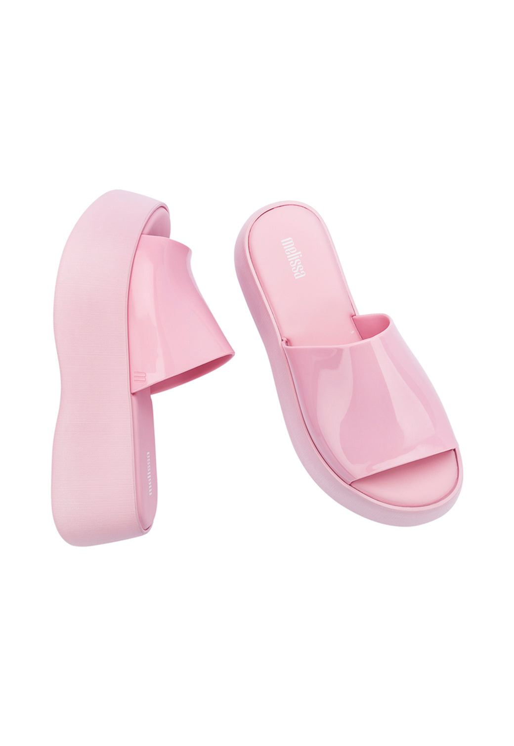 כפכפי פלטפורמה של המותג מליסה עם רצועה עבה בחזית. עשויות מהגומי הממוחזר המפורסם של מליסה עם הריח המתוק האופייני למותג.