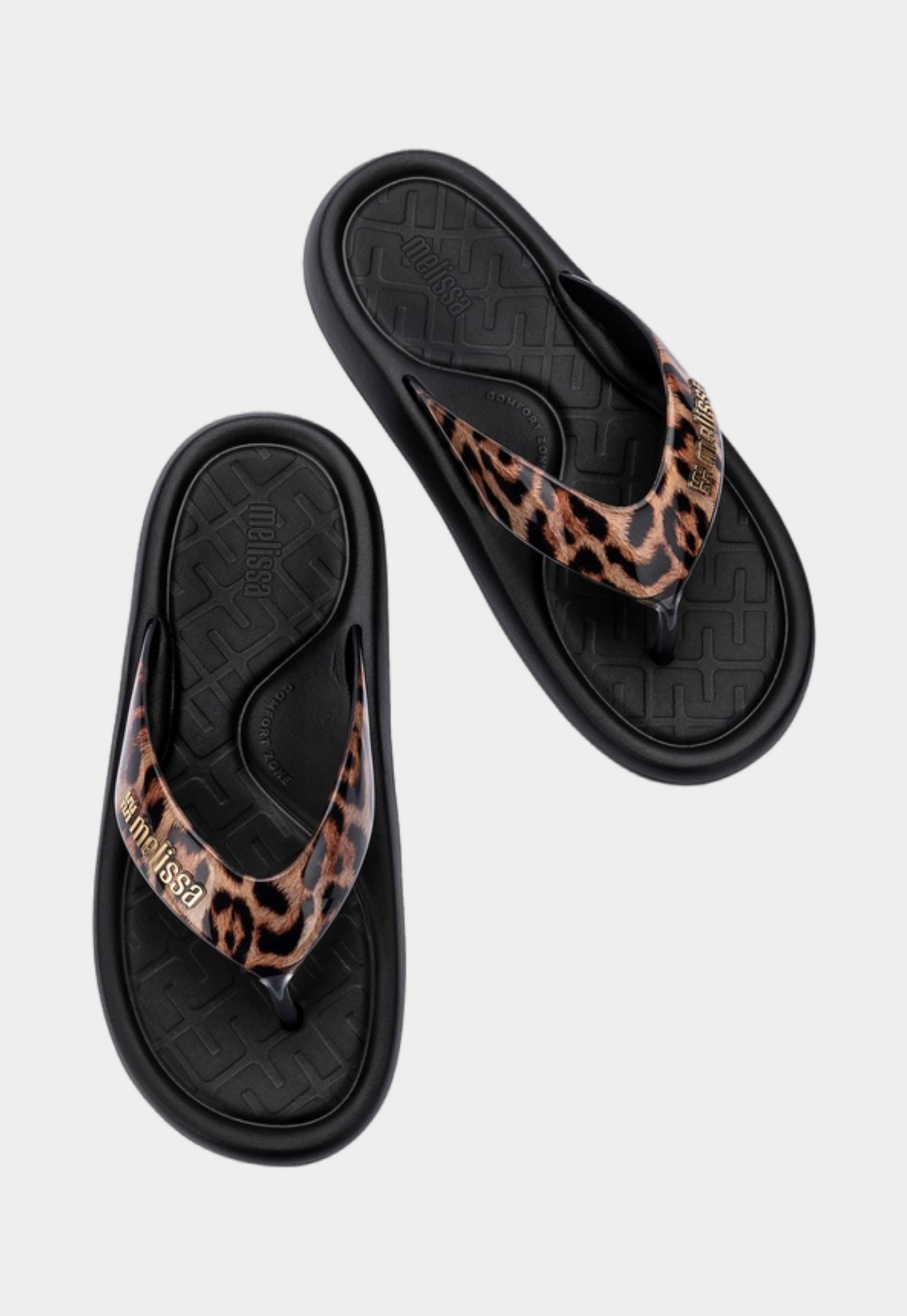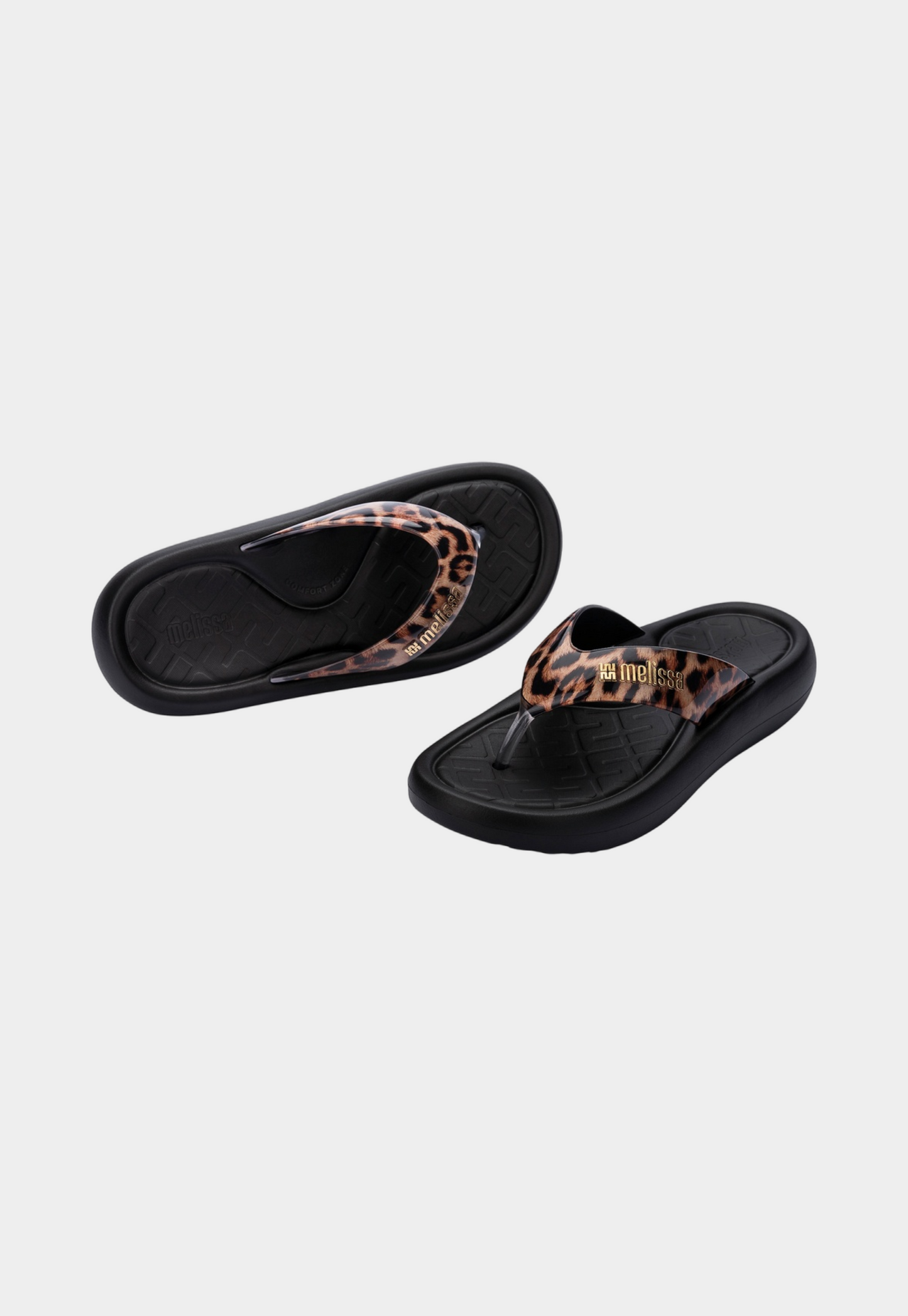 כפכפי אצבע לנשים מבית המותג מליסה. בעלי רצועות מנומרות, וסוליה ישרה. הכפכפים עשויים מהגומי הממוחזר של מליסה עם הריח המתוק האופייני למותג.