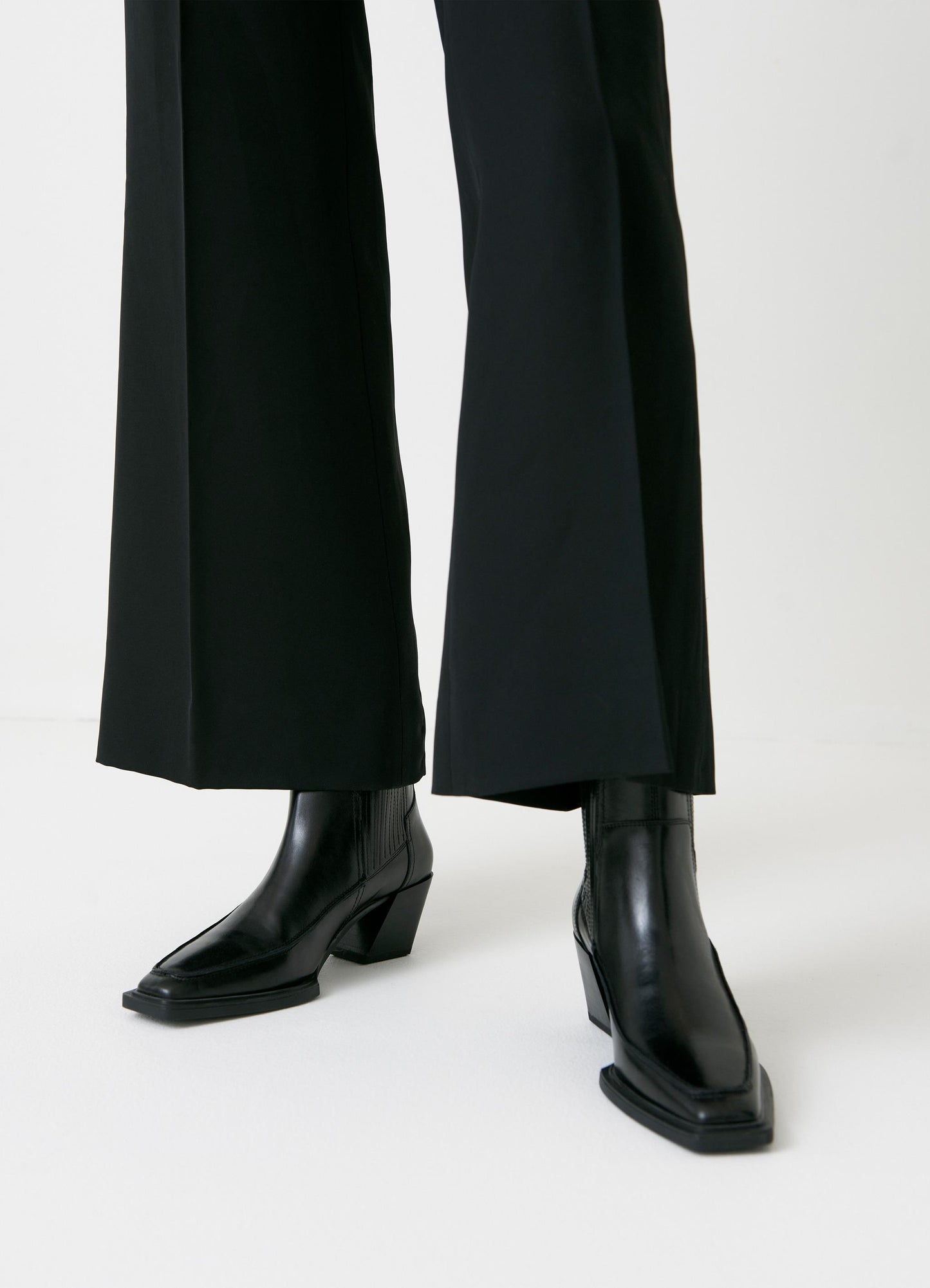 מגפי בוקרים בגרסה המודרנית של המותג וגבונד. המגפיים עשויים מעור בגימור מבריק, עם מפתח רגל רחב וחרטום צר ומרובע שלוקחים את העיצוב צעד אחד קדימה. למגפיים עקבים א-סימטריים בגובה 6.2 ס''מ.