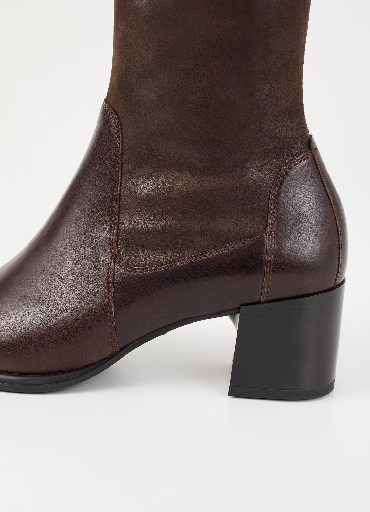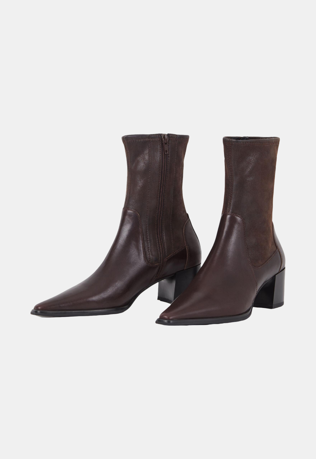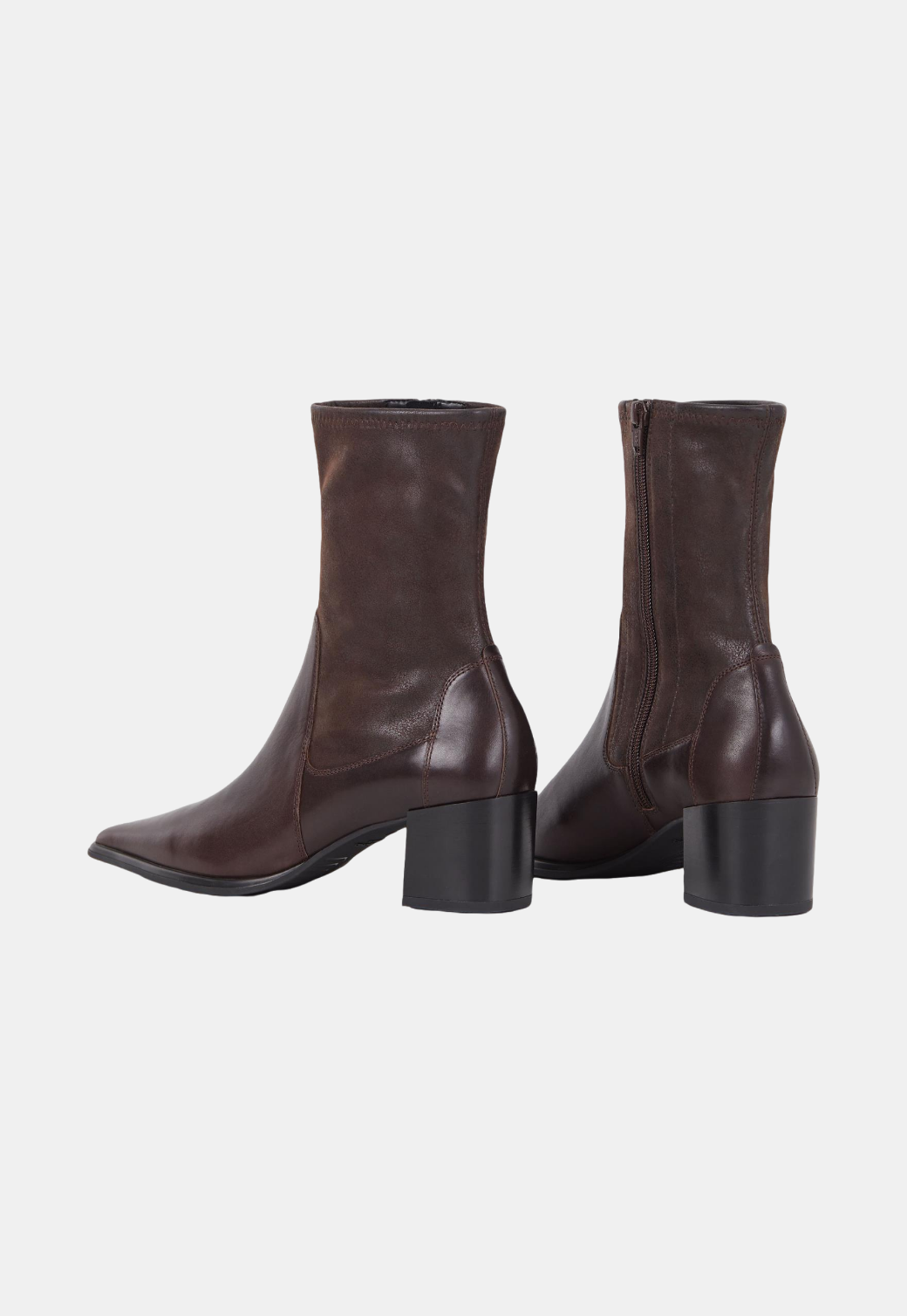 מגפיים לנשים מבית המותג וגהבונד. בגזרה נשית עם סיומת שפיץ וחלק עליון צמוד בסגירת רוכסן. בצבע חום כהה.