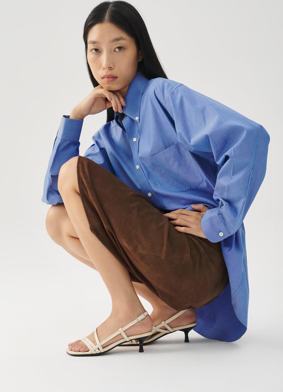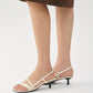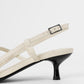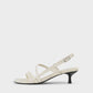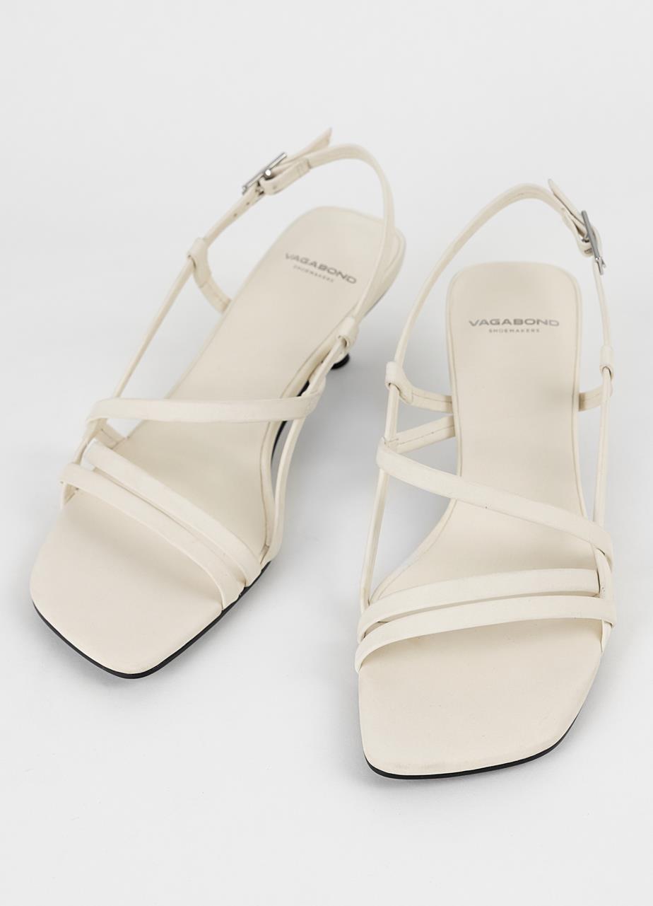 סנדלי עקב מעור לנשים מבית המותג ואגבונד. בלוק קלאסי ונשי עם רצועות דקות, סגירת אבזם ועקב דק קטם.