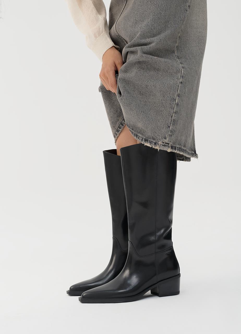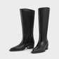 מגפיים לנשים מבית המותג וגהבונד, בגזרה גבוהה, בעלי חרטום מחודד, בשילוב עקב בגובה 4 ס"מ.
