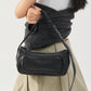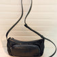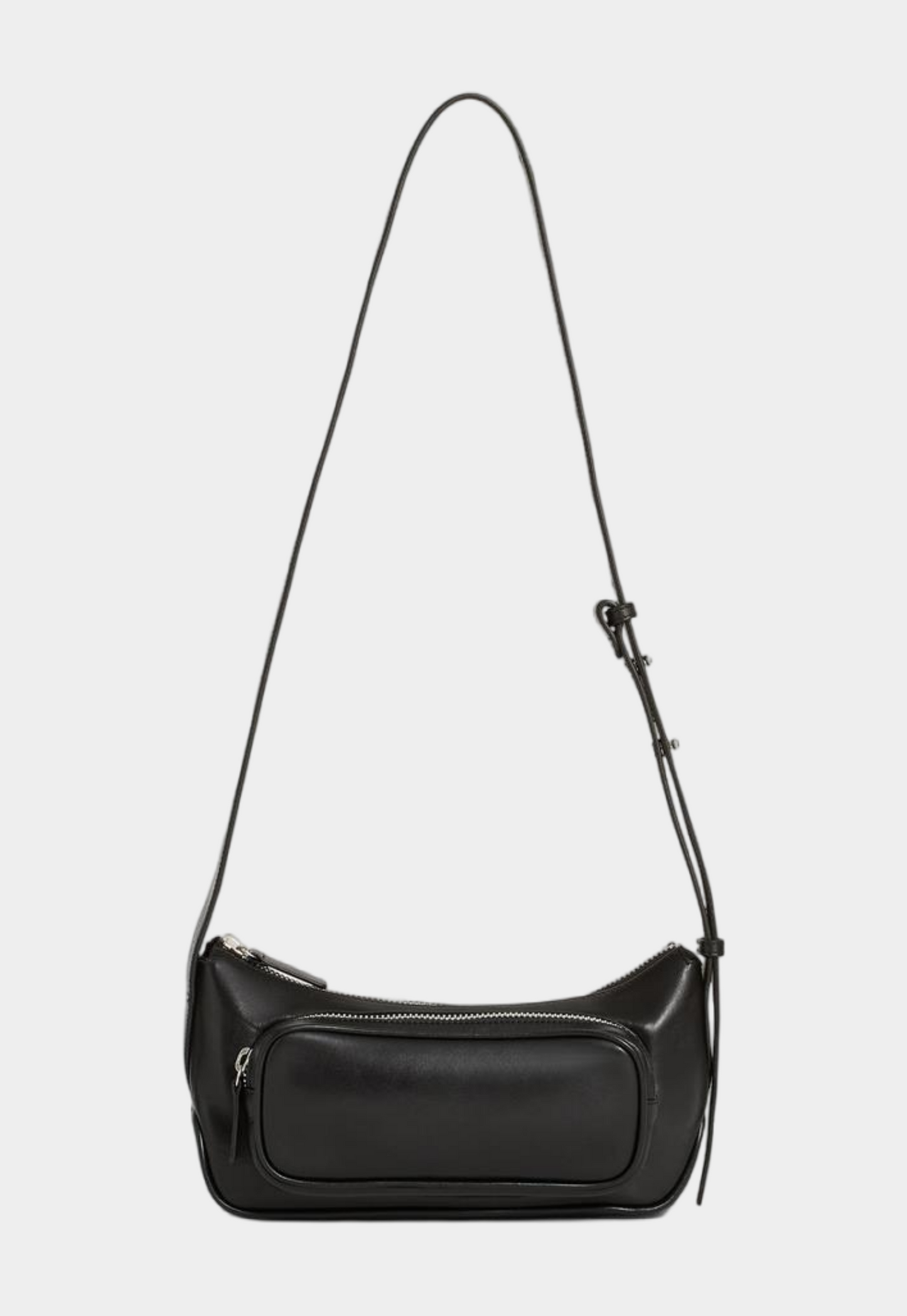 מעור שחור עם רצועה מתכווננת, סגירת רוכסן עליונה וכיס קדמי.
