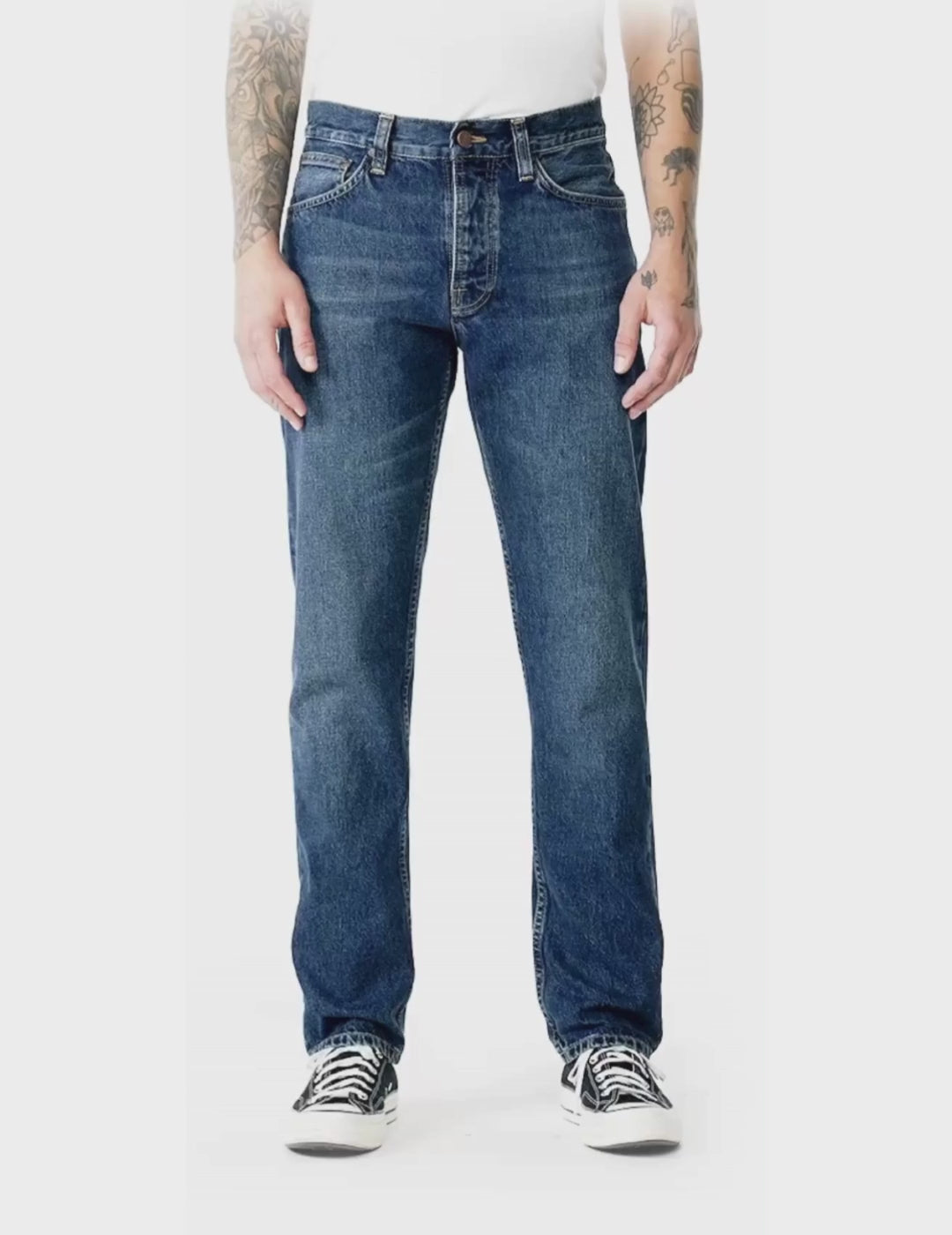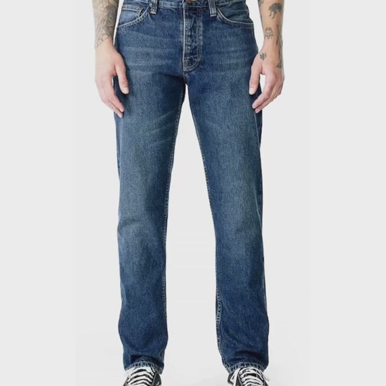 ג׳ינס קלאסי לגברים מבית נודי ג'ינס, בגזרת Straight Leg (רגל ישרה) ובנפילה טבעית.