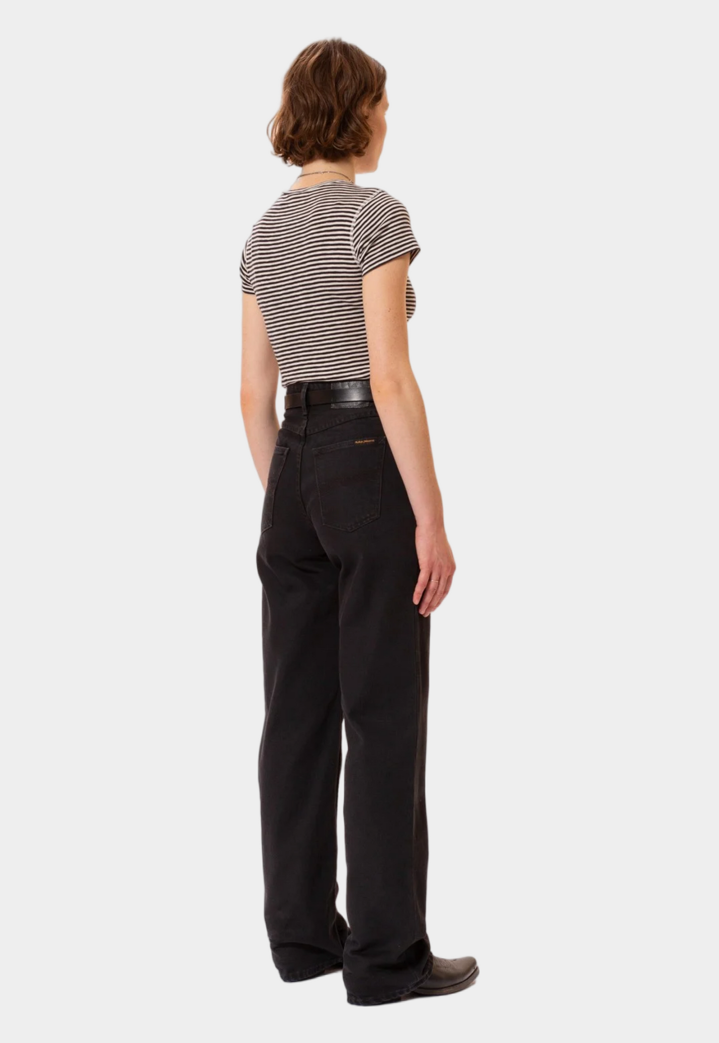 ג׳ינס ארוך לנשים מבית המותג נודי ג'ינס, בגזרה ישרה (Straight Leg) ומשוחררת עם מותן גבוהה (High Rise).