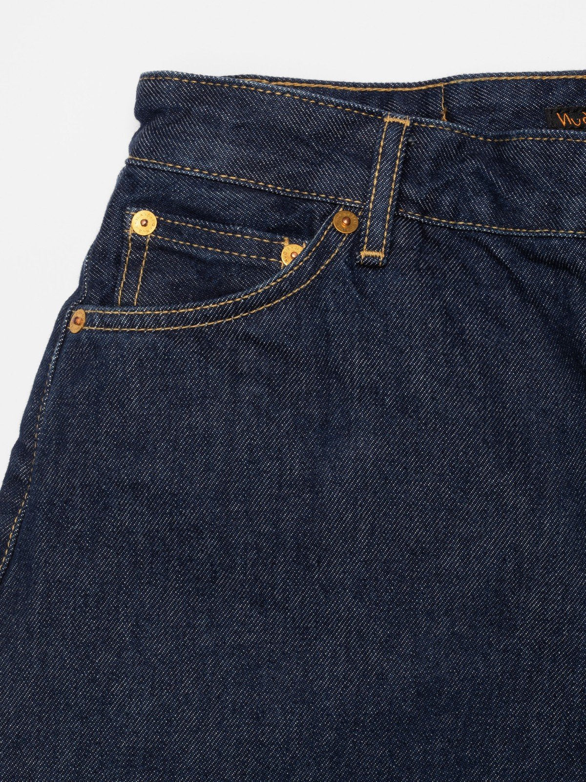 ג'ינס קצר לנשים מבית המותג נודי, בגזרה משוחררת ונמוכה ורגל רחבה, בגימור שטיפת כחול קלאסי. עם רוכסן וכפתור סגירה, שני כיסים קדמיים ואחוריים.