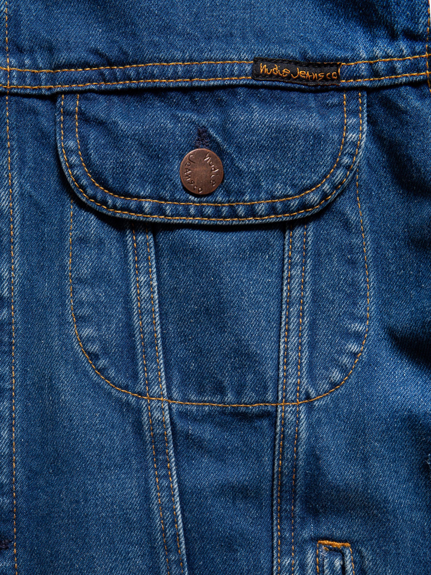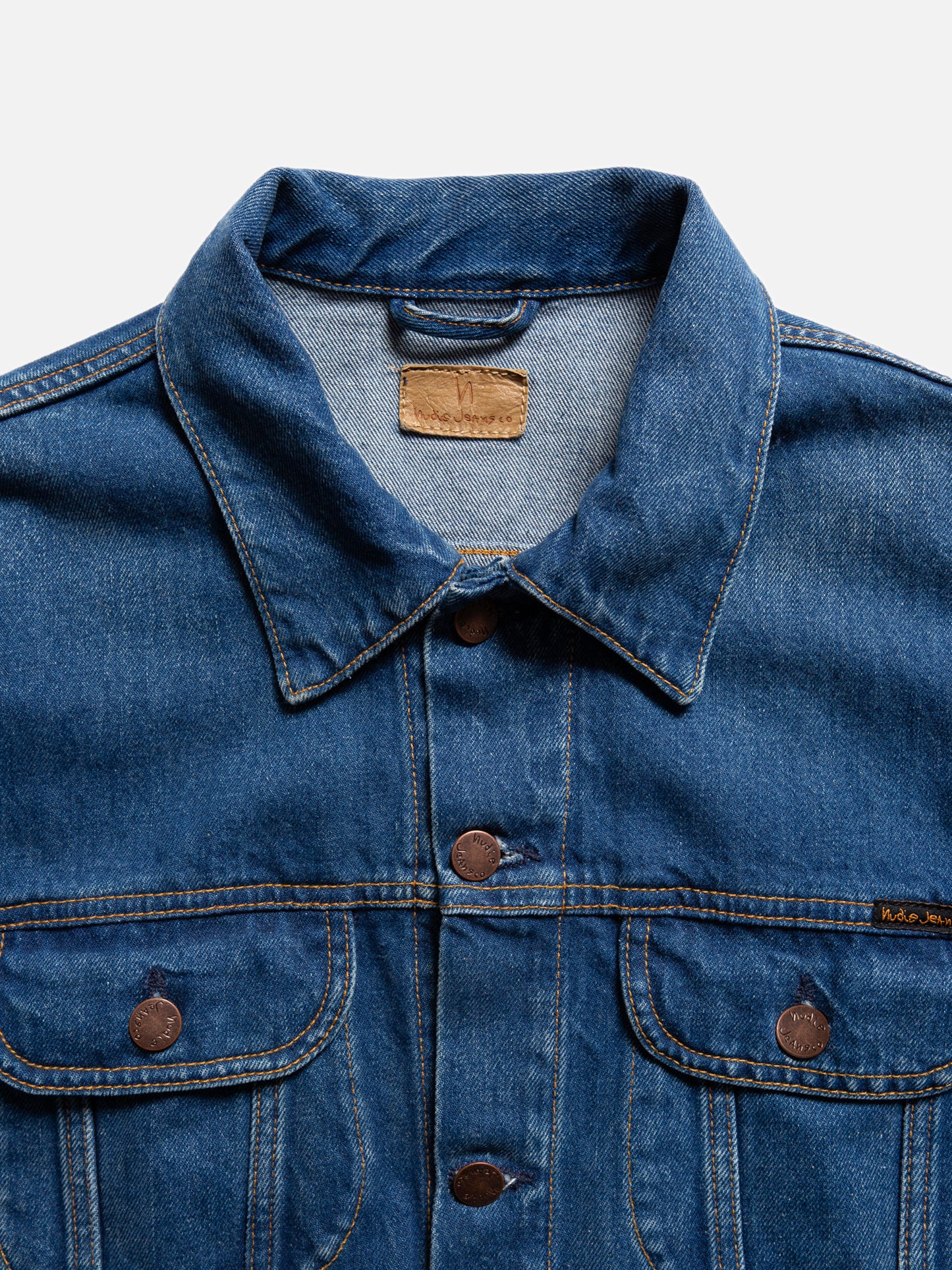 ג'קט ג'ינס לגברים מבית המותג נודי ג'ינס. בגזרה קלאסית עם צווארון, שרוולים ארוכים וסגירת כפתורים לכל האורך. בשילוב שני כיסים בחזה.