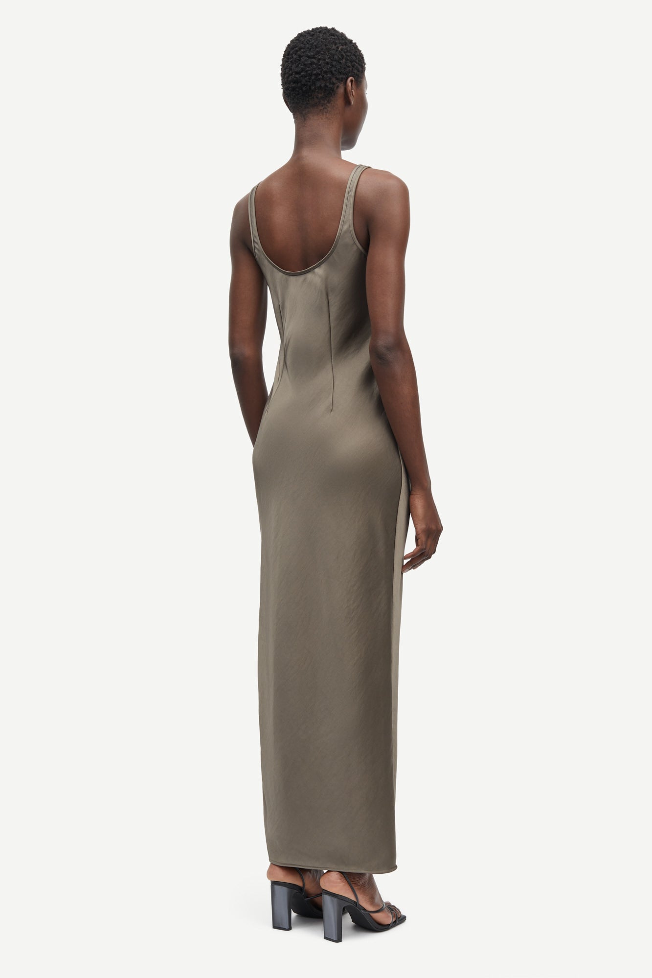 שמלת מקסי לנשים מבית המותג סמסו סמסו. בגזרה מעט משוחררת, עם מפתח מרובע וכתפיות דקות. השמלה עשויה מבד נשפך ומחמיא.