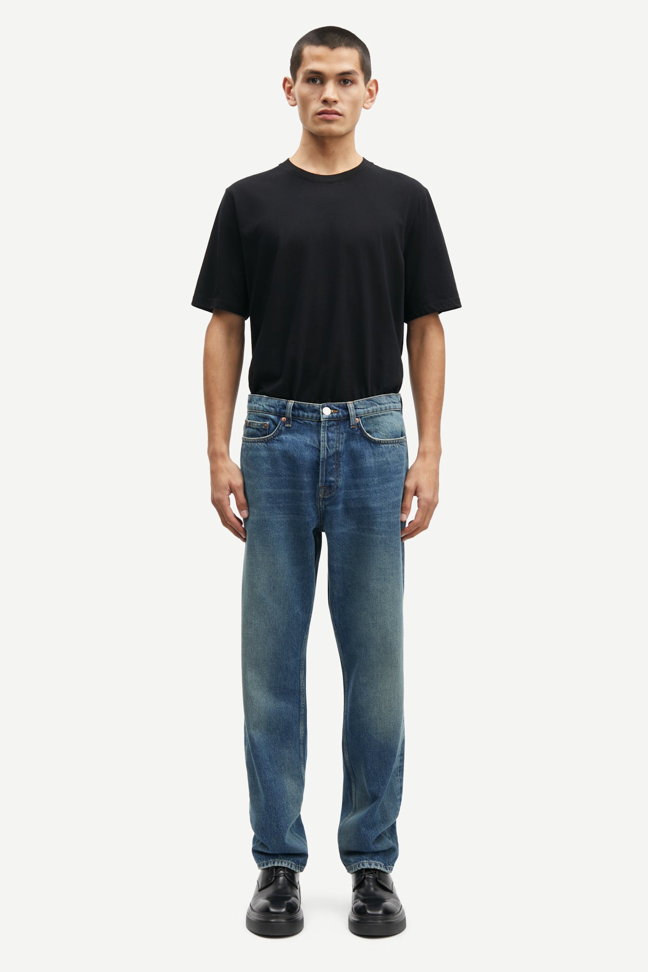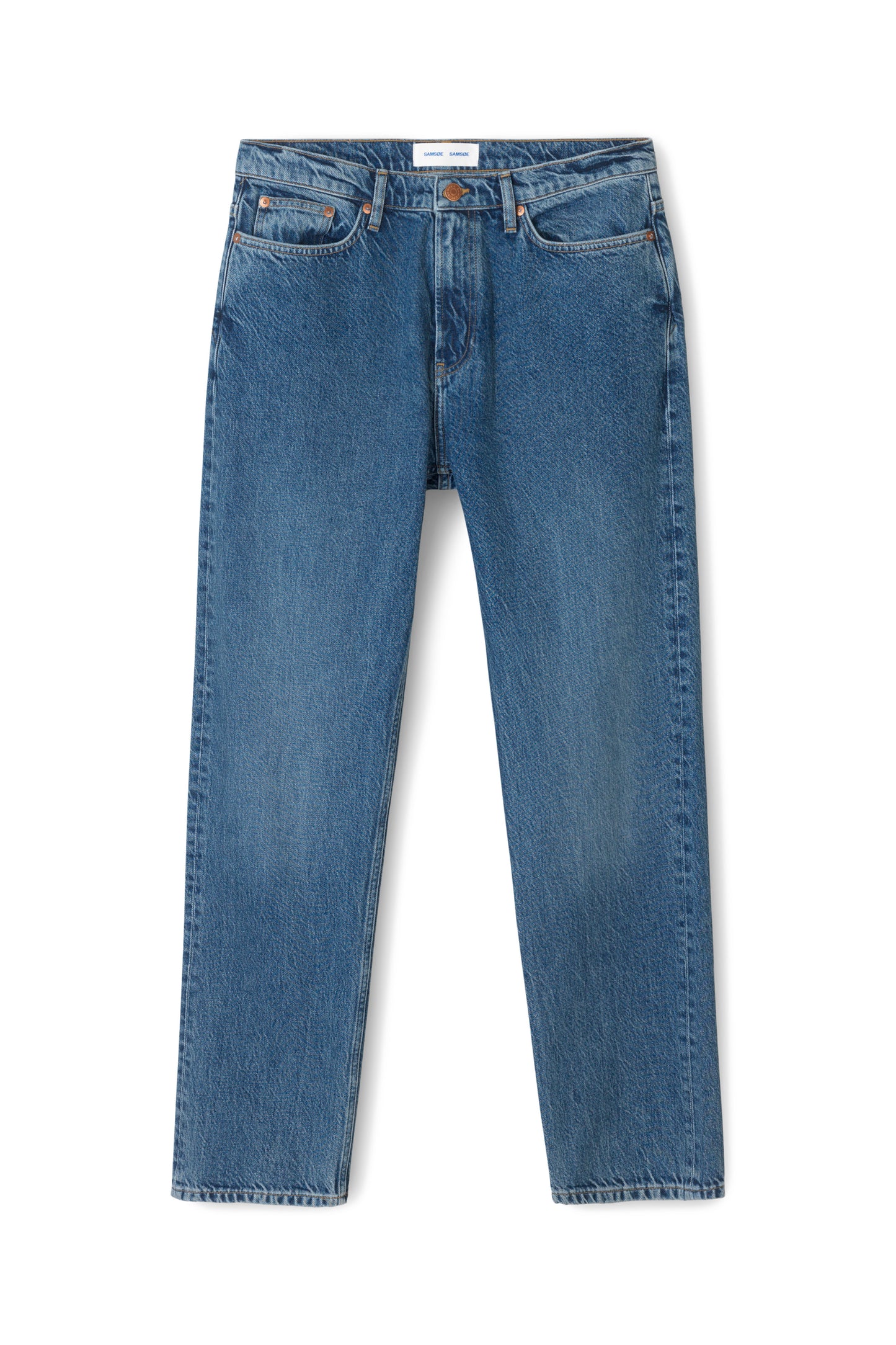 ג'ינס ארוך לגברים מבית המותג סמסו סמסו. בגזרה ישרה ומשוחררת, עם סגירת כפתורים וארבעה כיסים. הג'ינס עשוי מ-100% כותנה אורגנית.