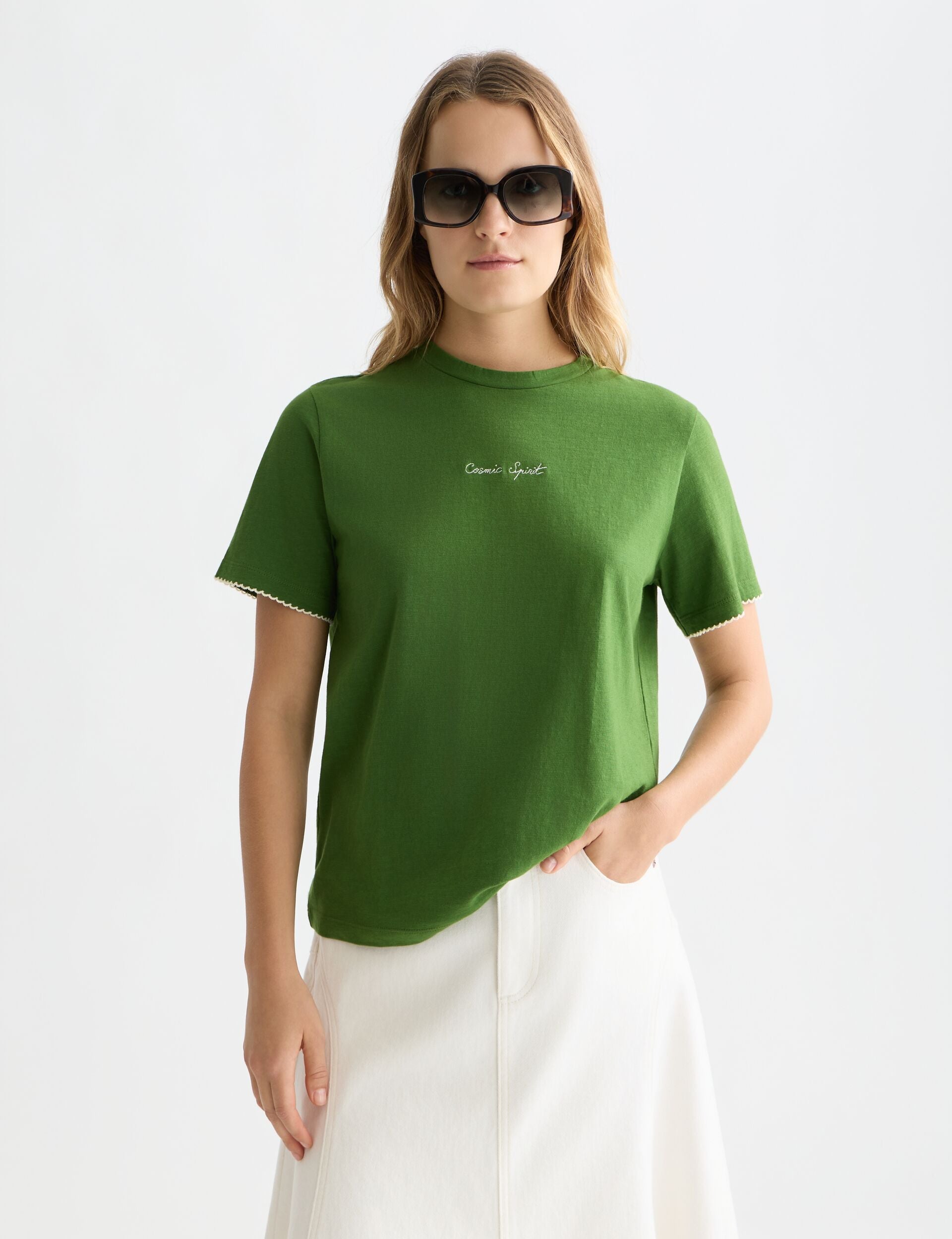 טי שירט מבית המותג סקוצ' & סודה, בגזרה רגילה ונוחה ללבישה יומיומית. בעל טקסטורה עדינה המעניקה מראה טבעי ולא מתאמץ, בשילוב רקמת לוגו עדינה בחזית למראה נקי ומדויק. פריט בסיס ורסטילי המשתלב בקלות עם ג׳ינסים, מכנסיים או חצאיות ליצירת לוק קז'ואל מוקפד.