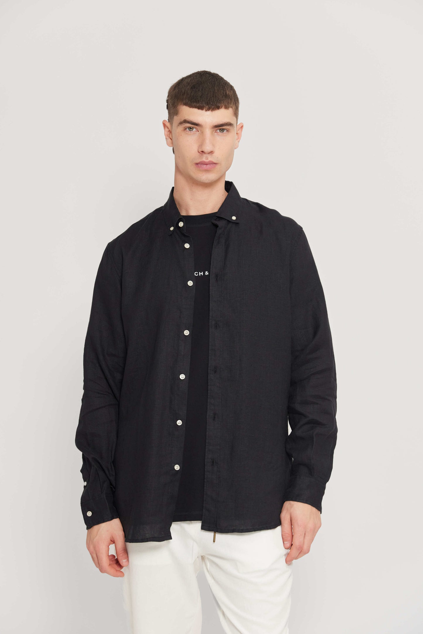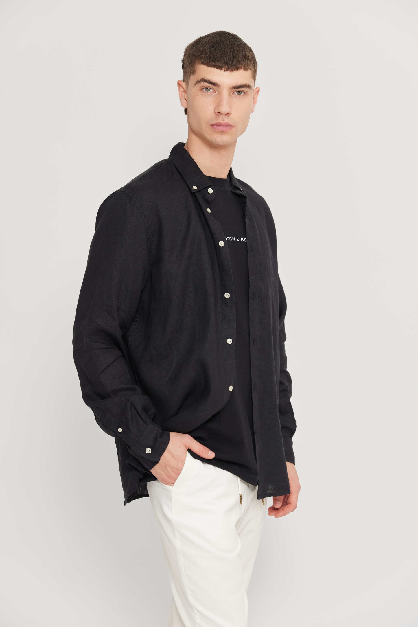 חולצה מכופתרת ארוכה לגברים מבית המותג סקוצ' אנד סודה. עשויה 100% פשתן, בגזרה נינוחה. עם צווארון קלאסי, שרוולים ארוכים וסגירת כפתורים בחזית.
