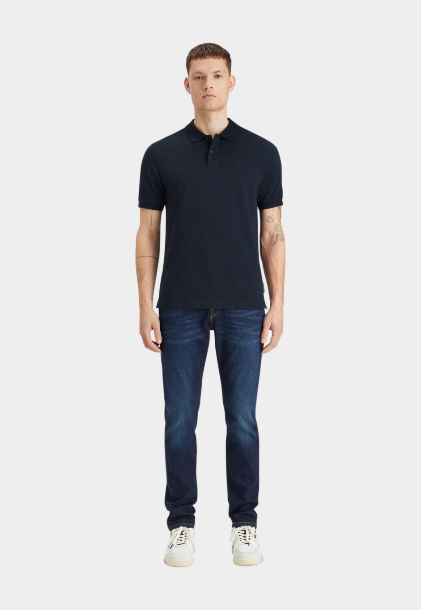חולצת פולו לגברים מבית המותג סקוצ' אנד סודה. בגזרה צמודה, עם צווארון פולו, שני כפתורים , שרוולים קצרים ולוגו המותג רקום בצד החזה.
