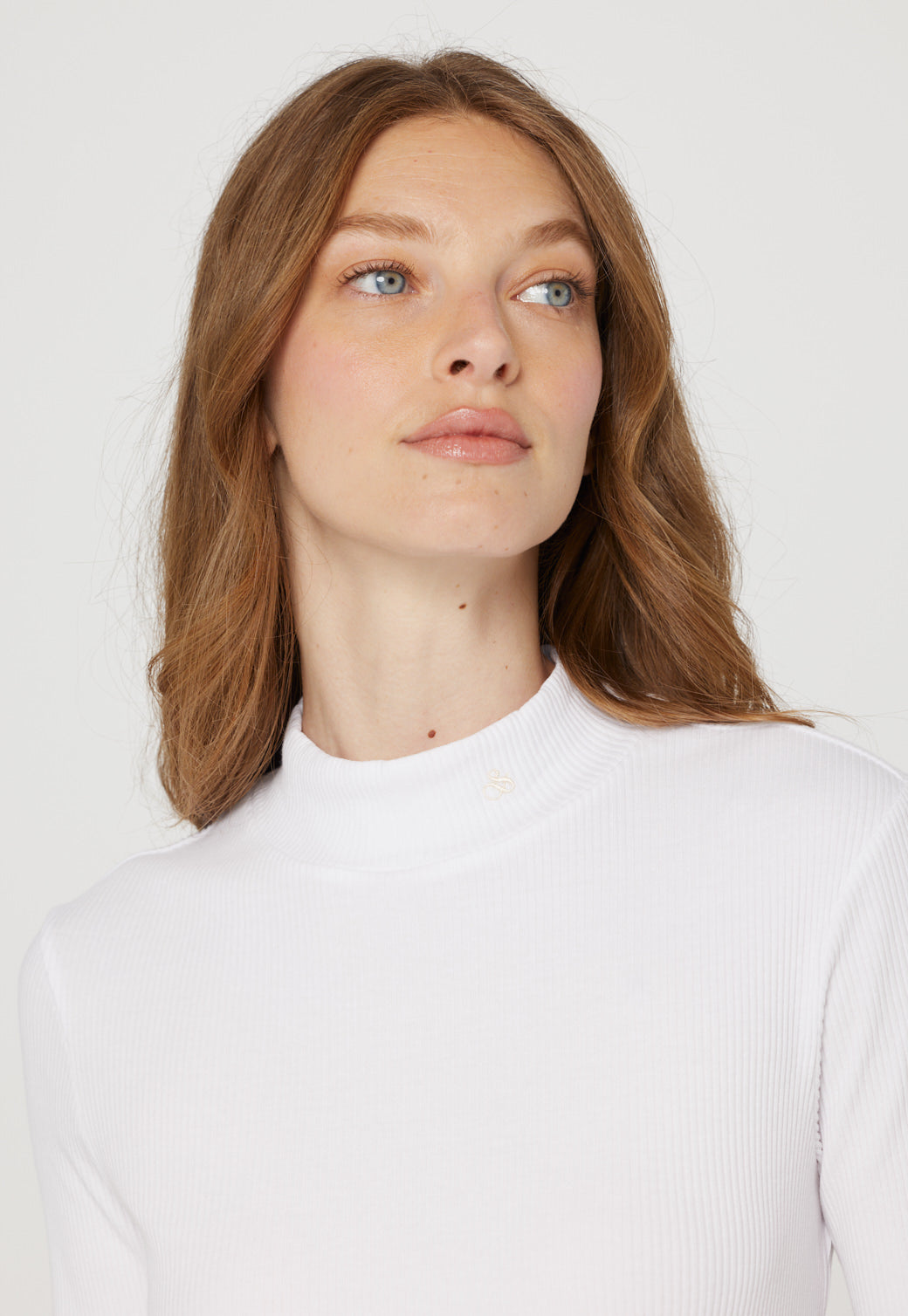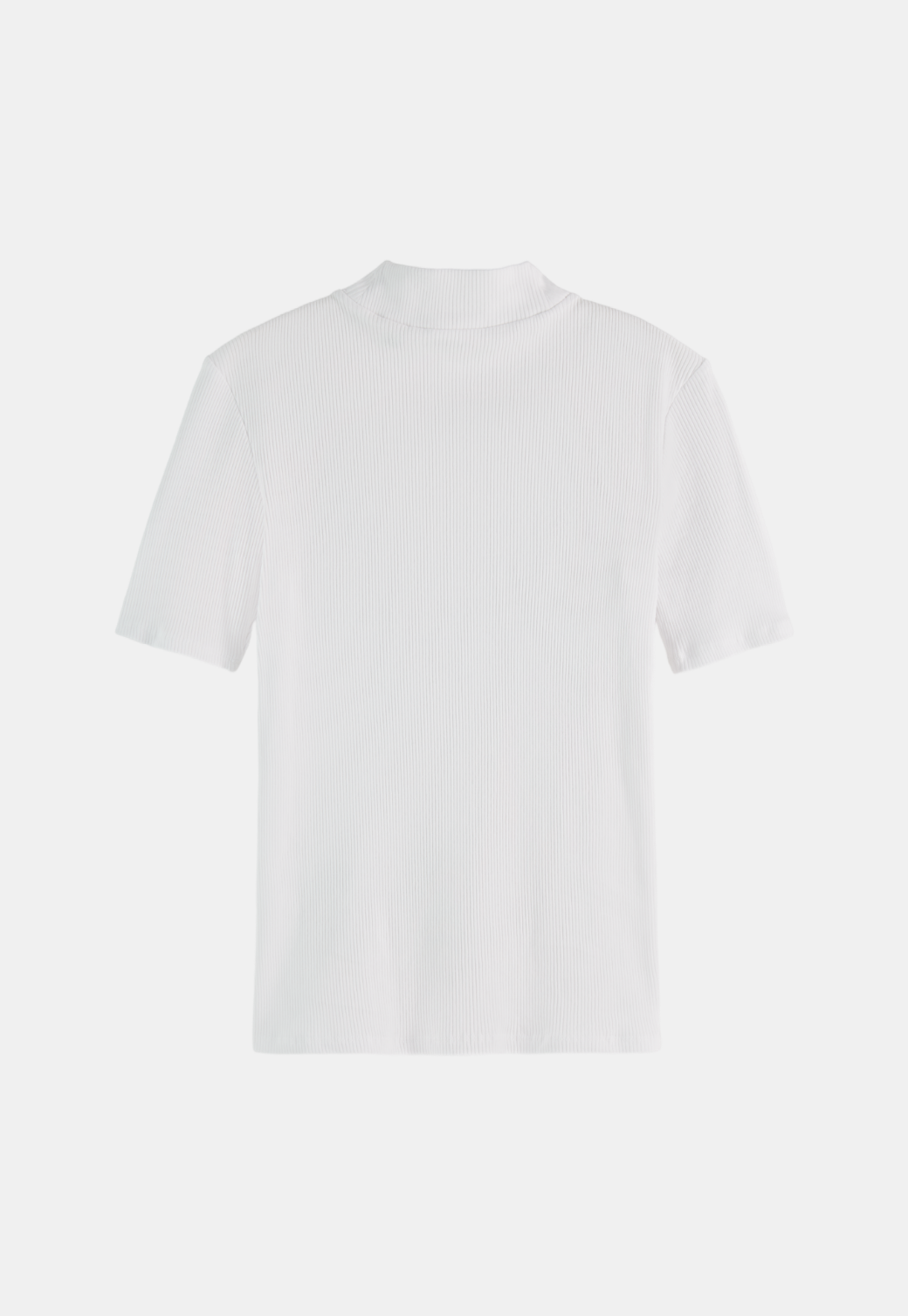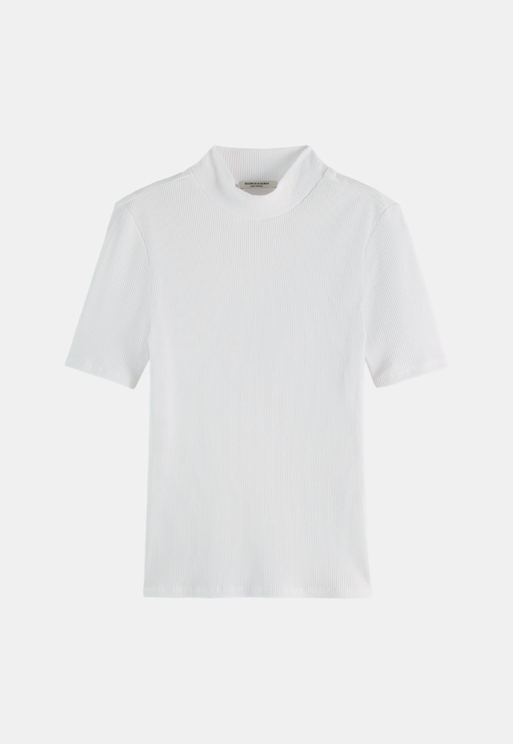 חולצת גולף לנשים מבית המותג סקוצ' אנד סודה. בגזרה צמודה עם צווארון גבוה ושרוולים קצרים, עשויה בד ריב. בשילוב לוגו קטן על הצווארון.