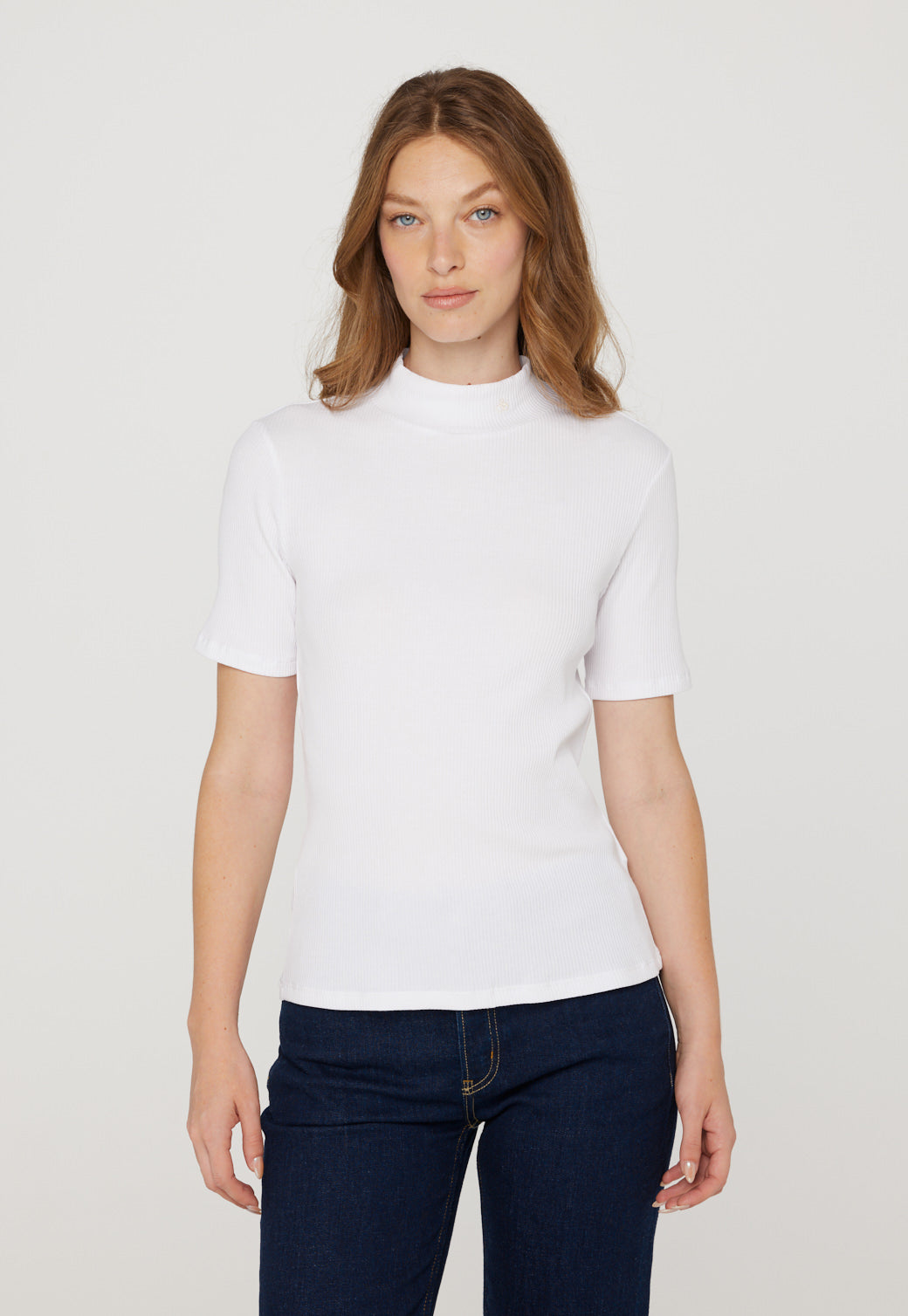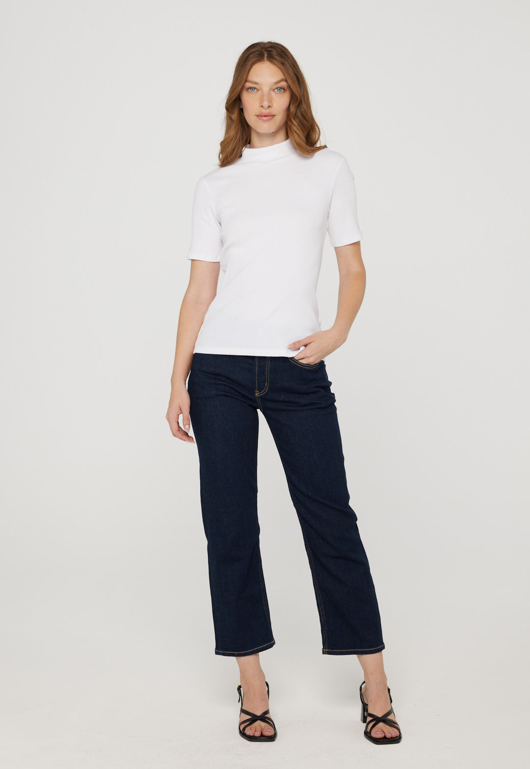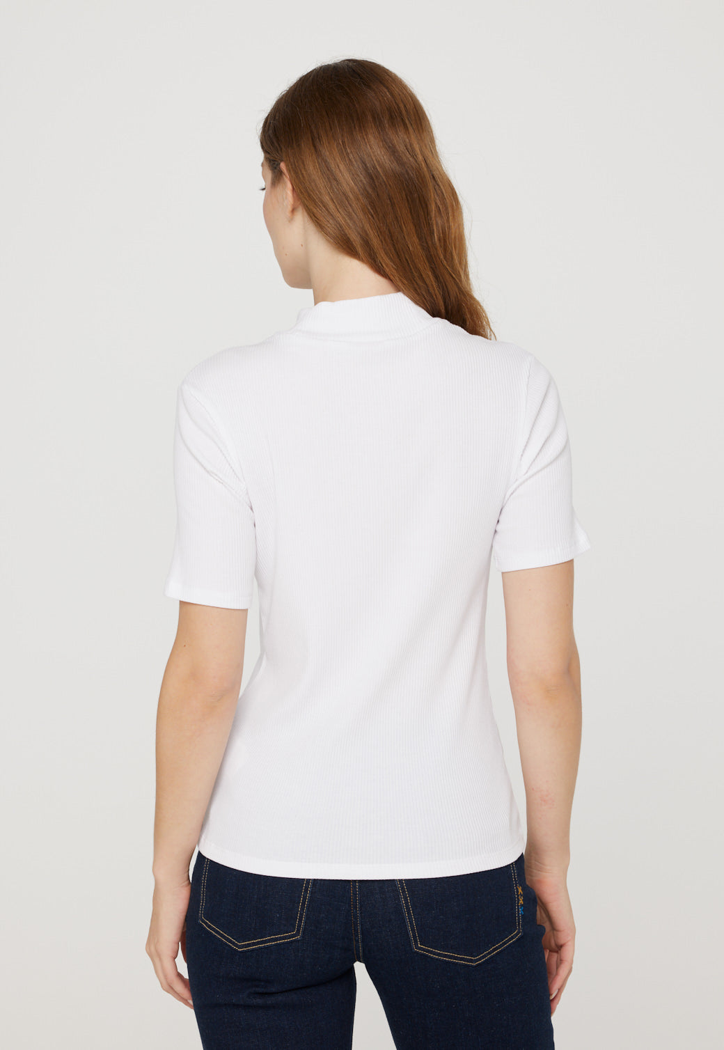 חולצת גולף לנשים מבית המותג סקוצ' אנד סודה. בגזרה צמודה עם צווארון גבוה ושרוולים קצרים, עשויה בד ריב. בשילוב לוגו קטן על הצווארון.