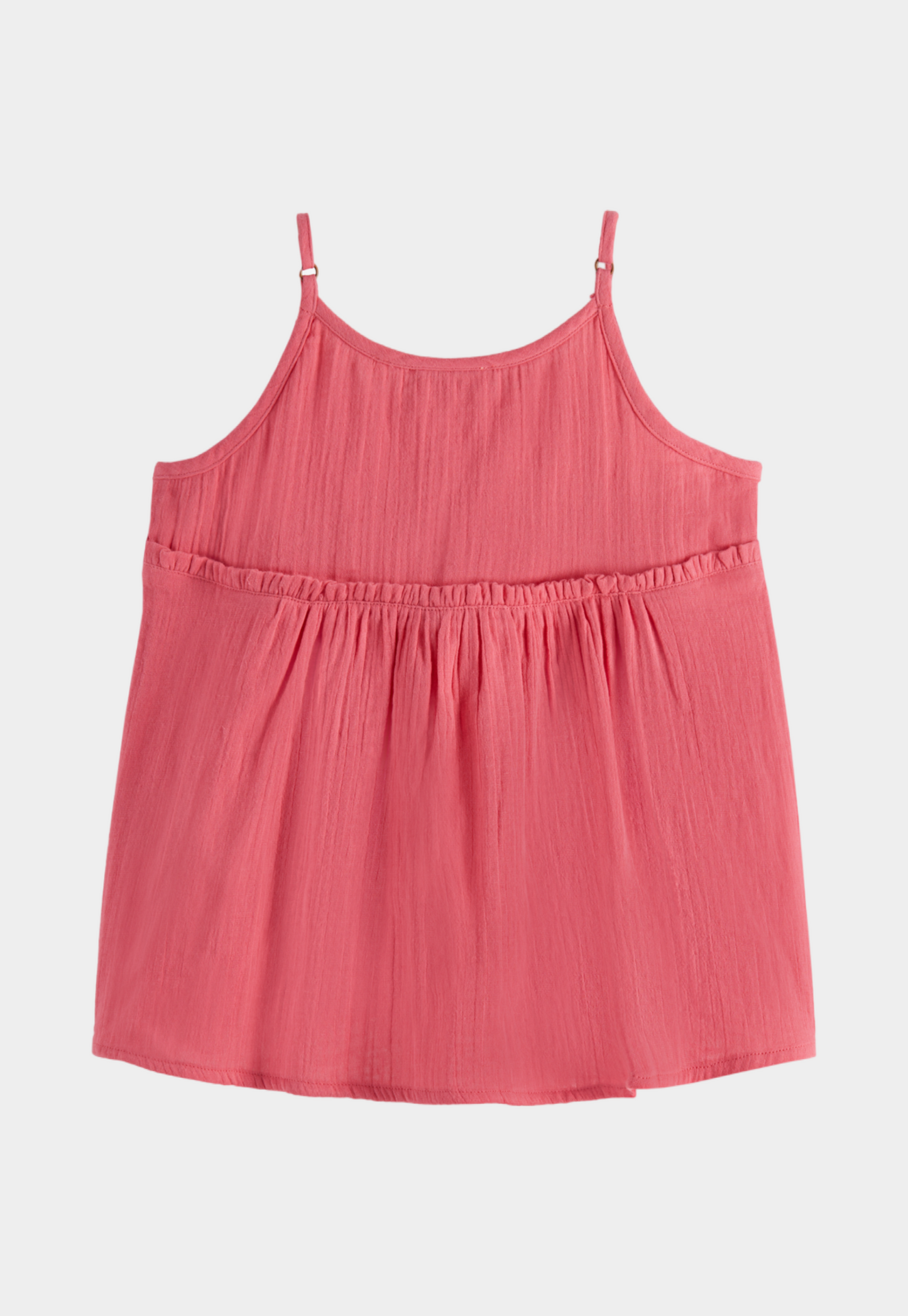 גופיה לילדות מבית המותג סקוצ' אנד סודה, עשויה כותנה נעימה. בגזרה משוחררת, עם מפתח עגול וקטן וכתפיות דקות, .