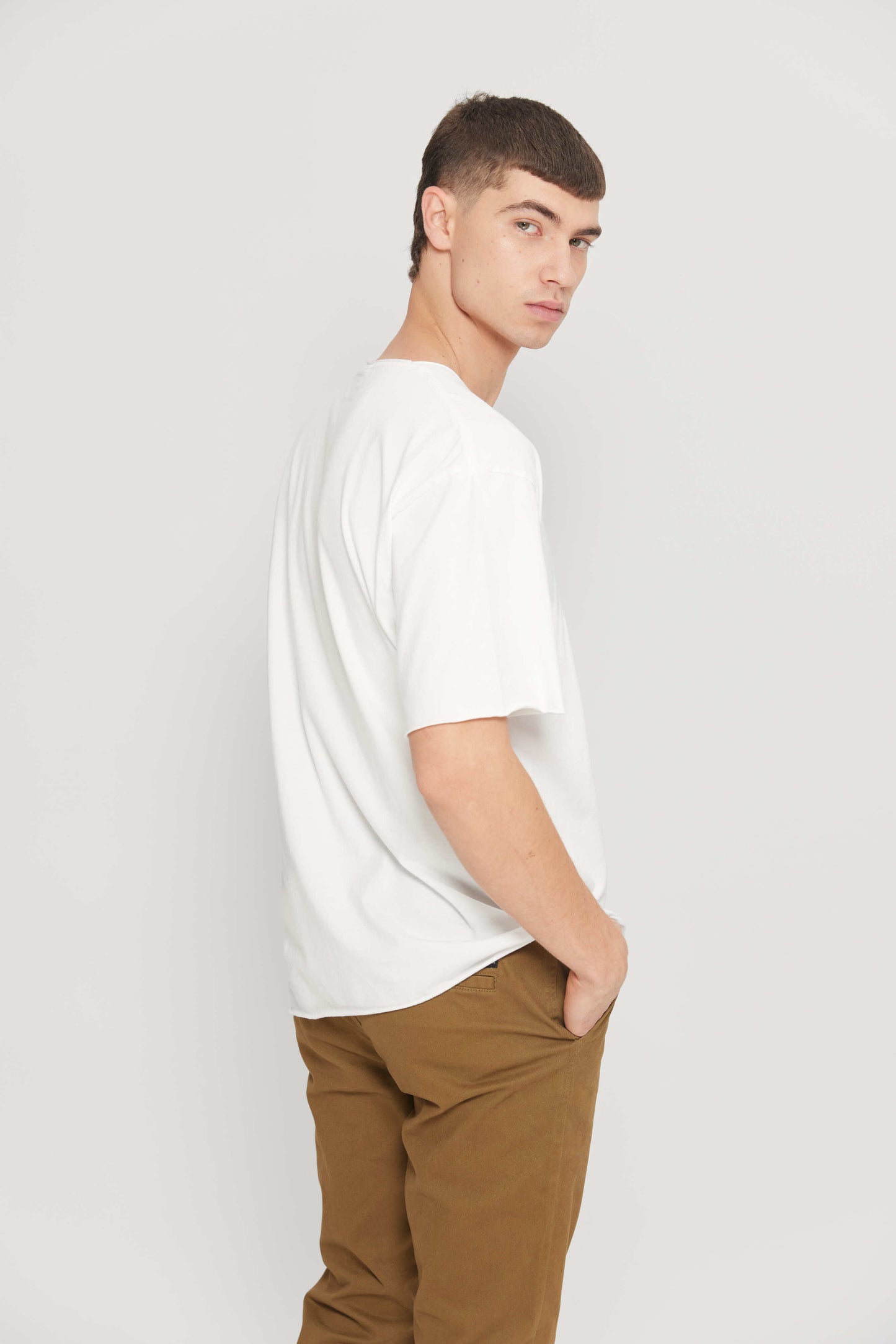 בגזרה משוחררת, עם מפתח עגול, שרוולים קצרים וסיומות בד מתגלגלות שיוצרות מראה לא מתאמץ וקליל.