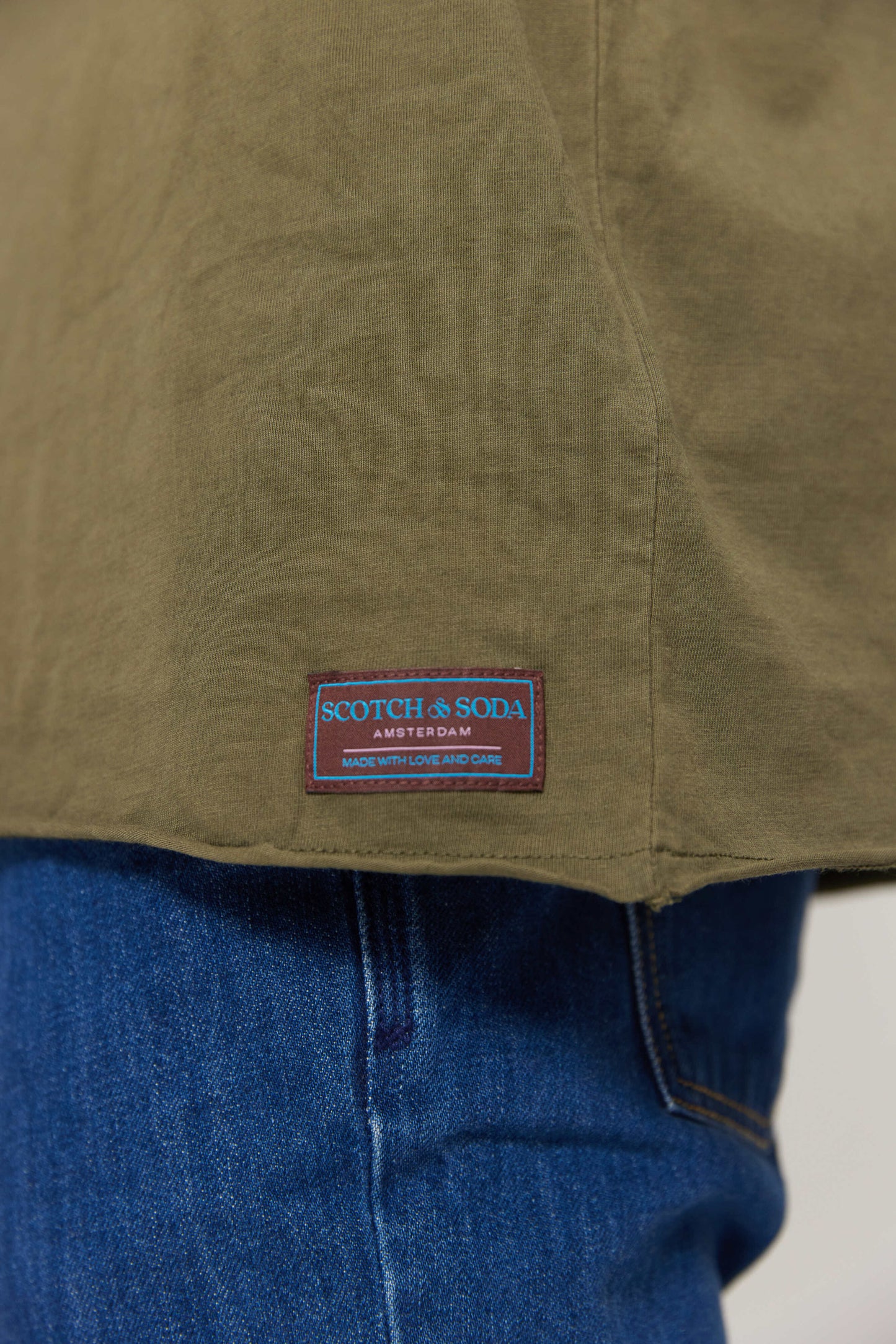 טי שירט קצרה לגברים מבית המותג סקוצ' אנד סודה. גזרה קלאסית, עם מפתח עגול, שרוולים קצרים ופאץ' של הלוגו בסיומת.