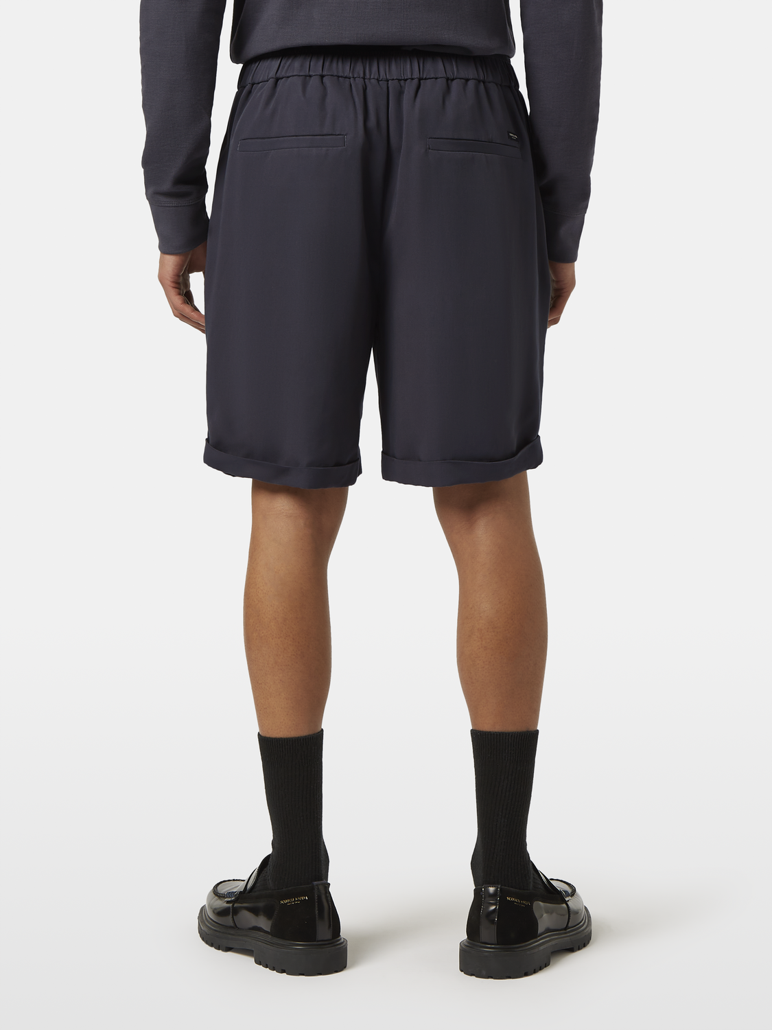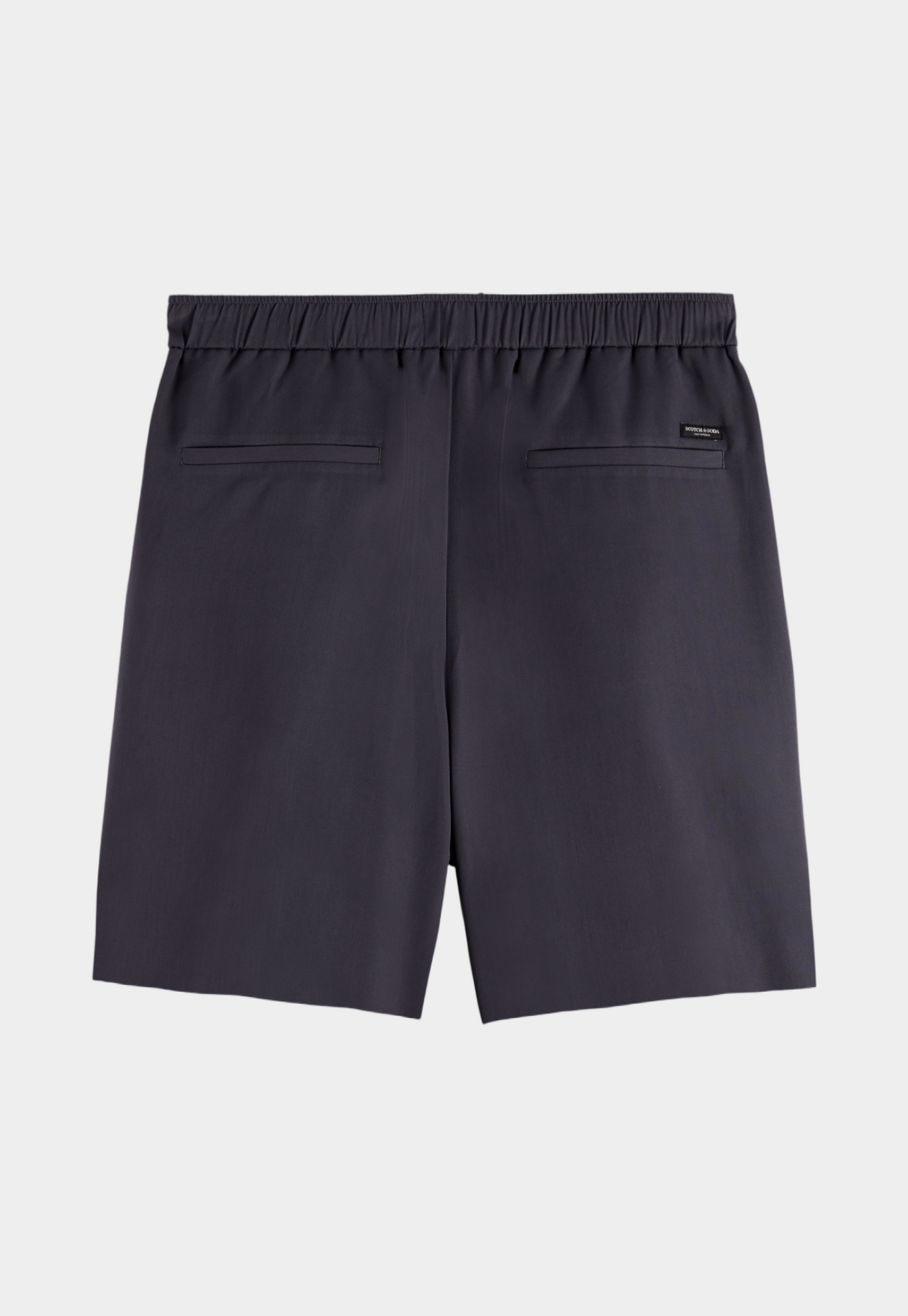 מכנסיים קצרים לגברים מבית המותג סקוצ' אנד סודה. בגזרה קלאסית ומחויטת, עם כפתור סגירה, וגומי אחורי במותן, לולאות לחגורה ואורך עד הברך.