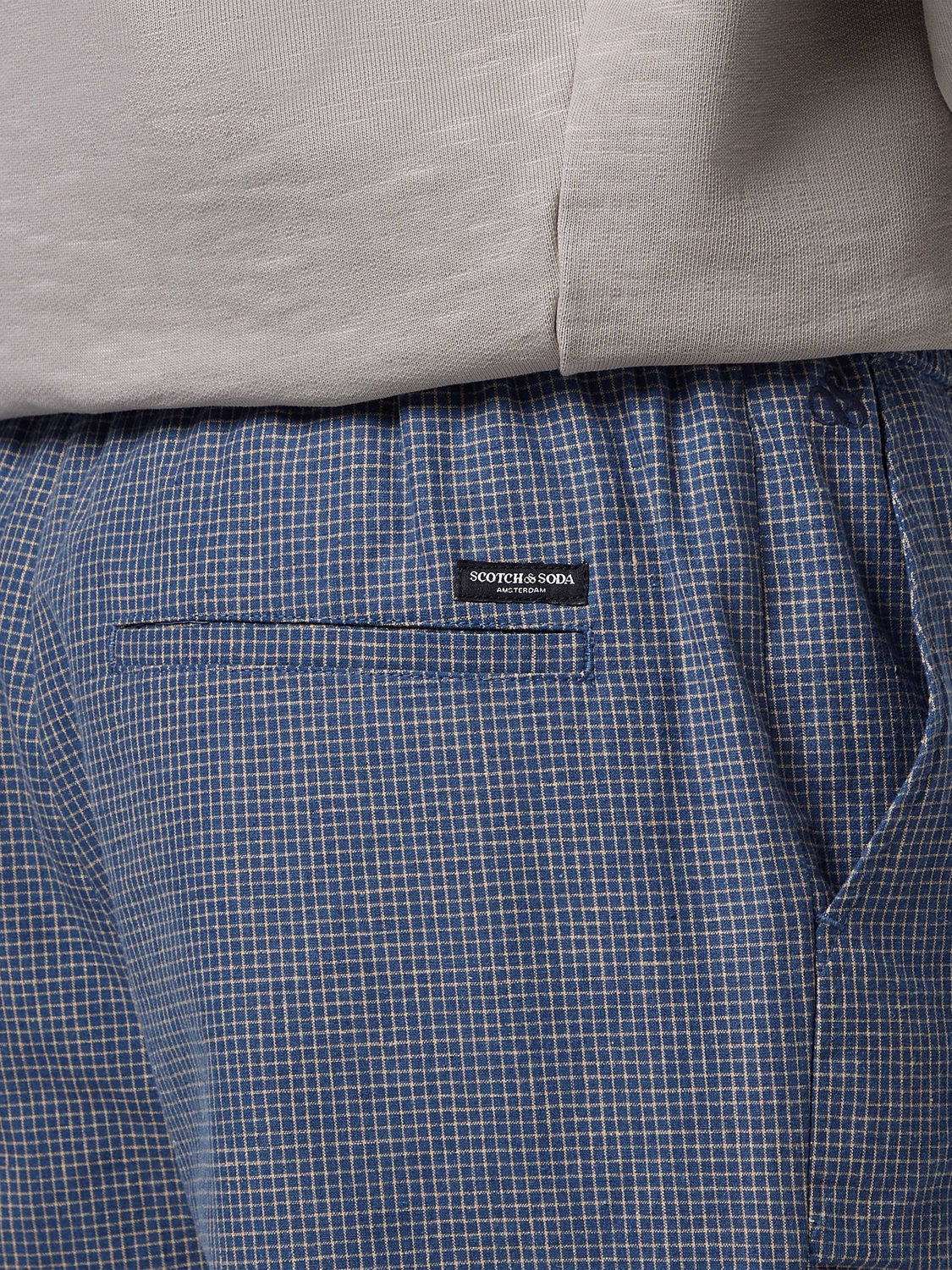 מכנסיים קצרים לגברים מבית המותג סקוצ' אנד סודה. בגזרה משוחררת, עם גומי במותן, שרוכי קשירה, שני כיסים ואורך עד הברך.