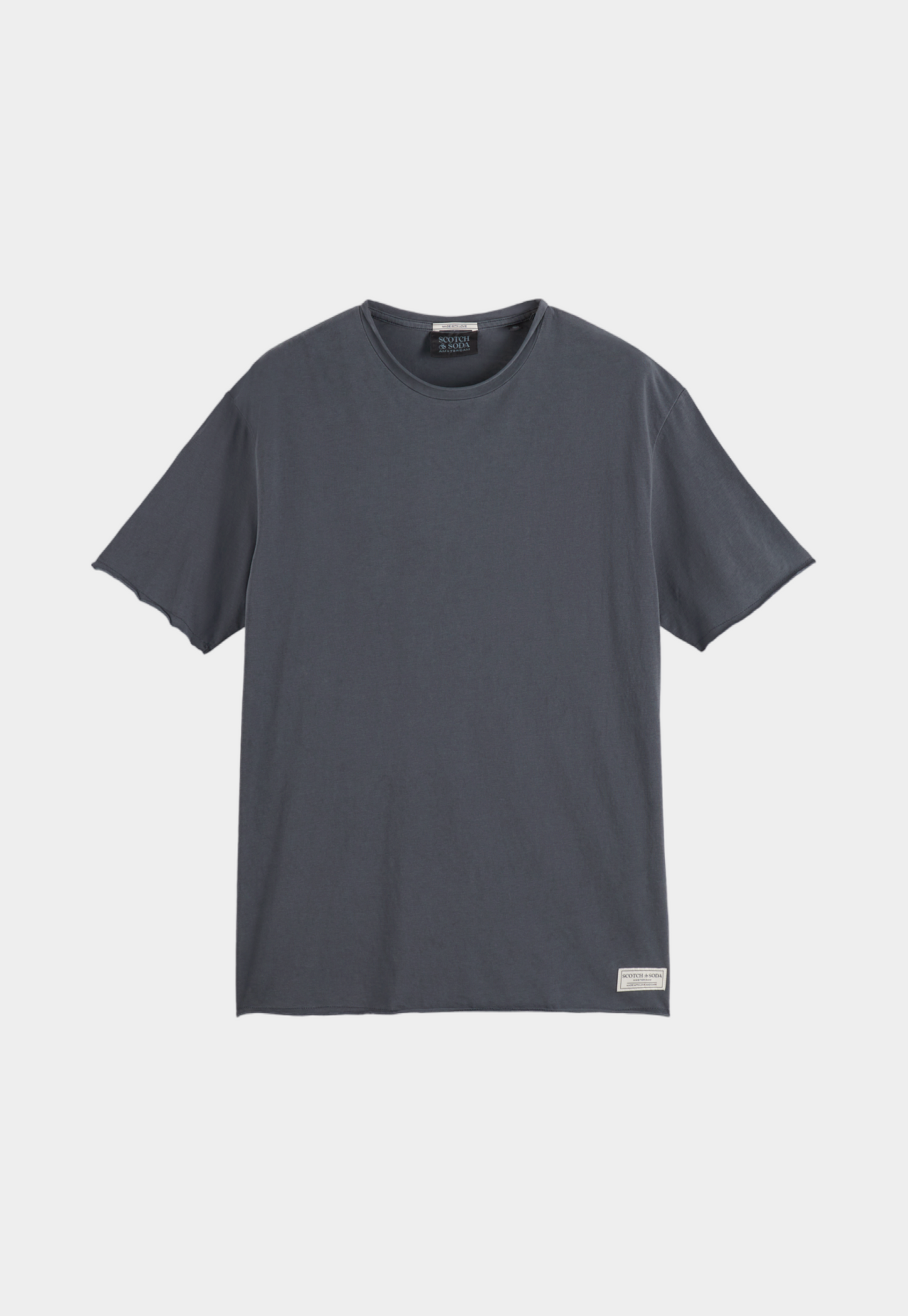 טי שירט קצרה לגברים מבית המותג סקוצ' אנד סודה. בגזרה משוחררת עם מפתח עגול ושרוולים קצרים, בסיומת גזורה. בשילוב פאץ' בצד התחתון.