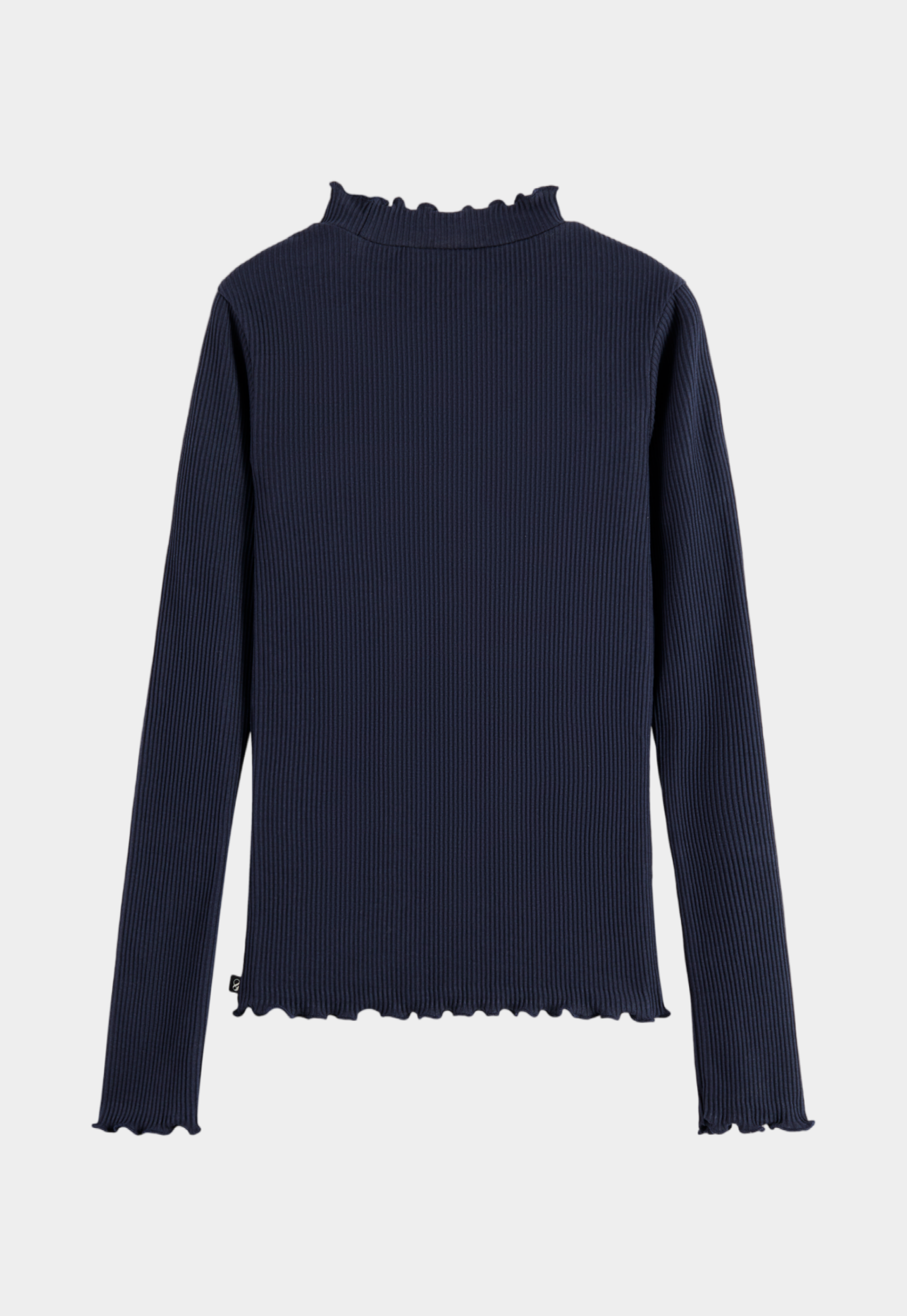 סריג לילדים מבית המותג סקוצ' אנד סודה. בגזרה צמודה, עם צווארן סגור ומתקפל, שרוולי ארוכים וסיומות מתגלגלות.