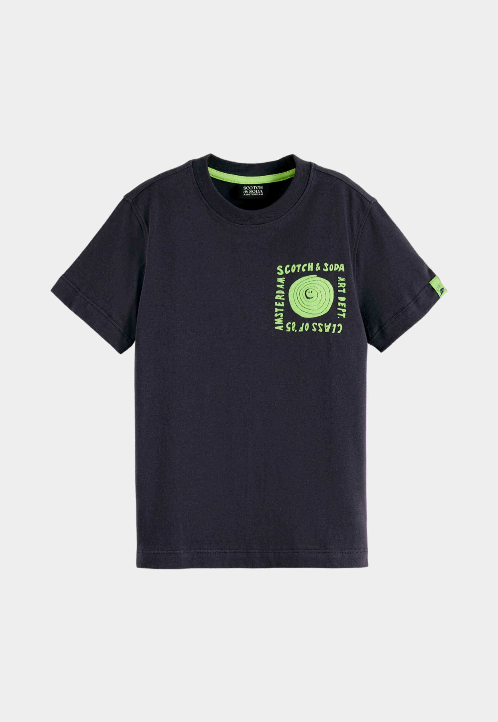 טי שירט קצרה לילדים מבית המותג סקוצ' אנד סודה. בגזרה קלאסית נינוחה, עם מפתח עגול, שרוולים קצרים, בשילוב הדפס בחזית ובגב.