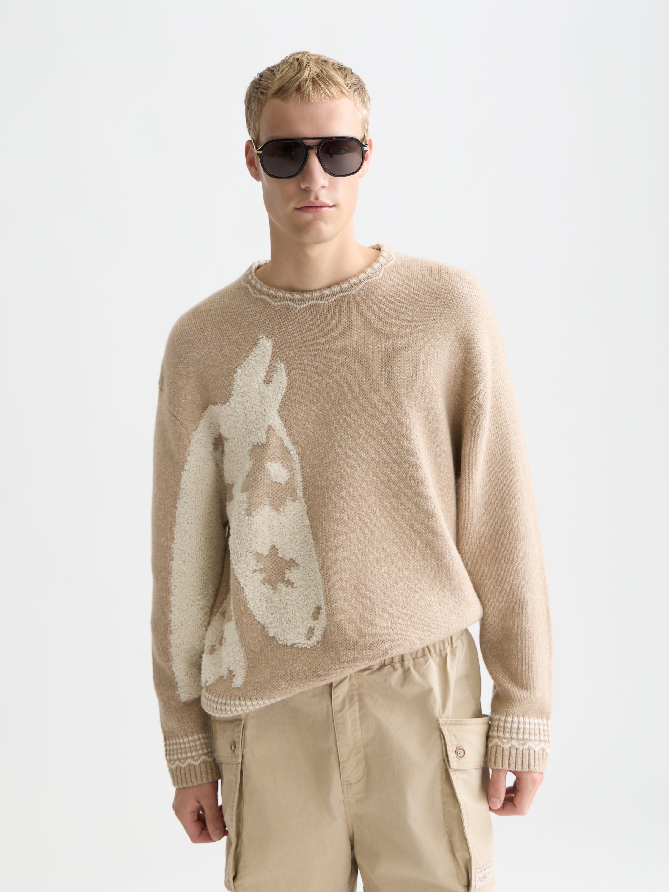 סוודר פולאובר לגברים מבית המותג סקוצ' & סודה, בגזרה רפויה ליצירת מראה נינוח ולא מתאמץ. הדגם עשוי בד ז’קארד עם טקסטורה מודגשת ועיטורים גרפיים בולטים, המעניקים מראה אופנתי ועדכני לצד סילואט רכה ונוחה ללבישה.