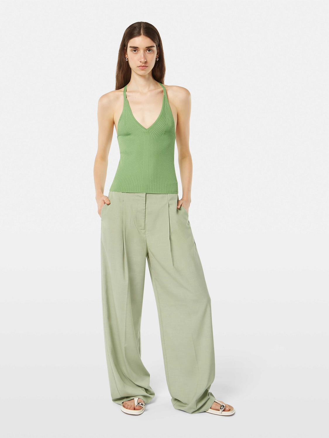 גופיית ריב לנשים מבית המותג סקוצ' אנד סודה. בגזרה צמודה, עם מפתח וי עמוק, כתפיות צרות וכתפייה אמצעית בגב.