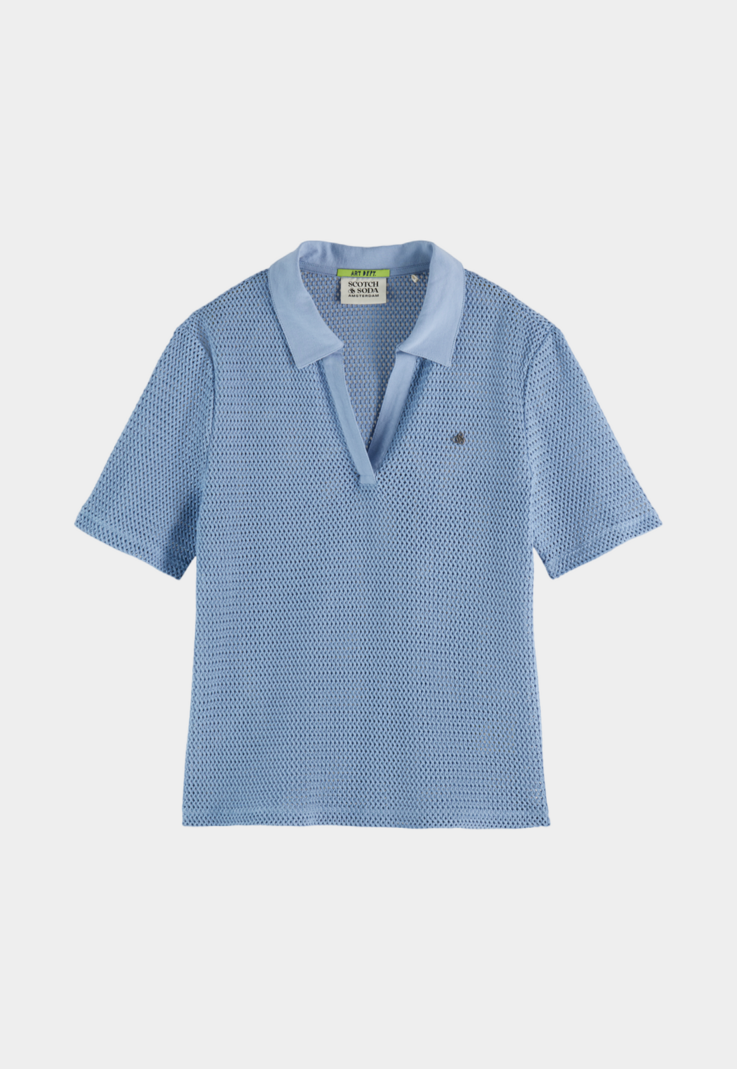 חולצת פולו לנשים מבית המותג סקוצ' אנד סודה. בגזרה משוחררת, עם צווארון פולו, מבד רשת, בשילוב לוגו המותג בצד החזה.