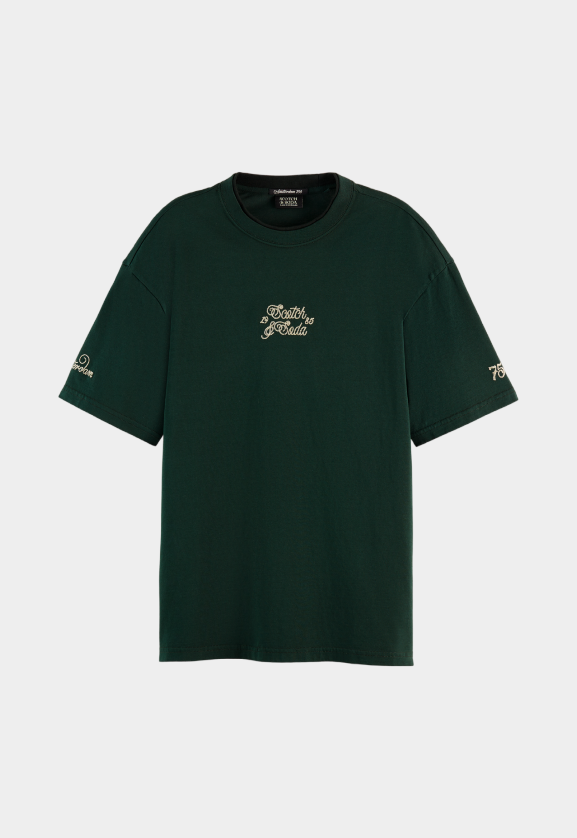 טי שירט קצרה לנשים מבית המותג סקוץ' & סודה, חלק מקולקציית 750, בגזרה משוחררת עם מפתח עגול ושוליים קצרים. עשויה מבד נעים וקליל, ומשלבת לוגו מודגש בחזית ולוגואים מודפסים על השרוולים למראה ייחודי ומדויק.
