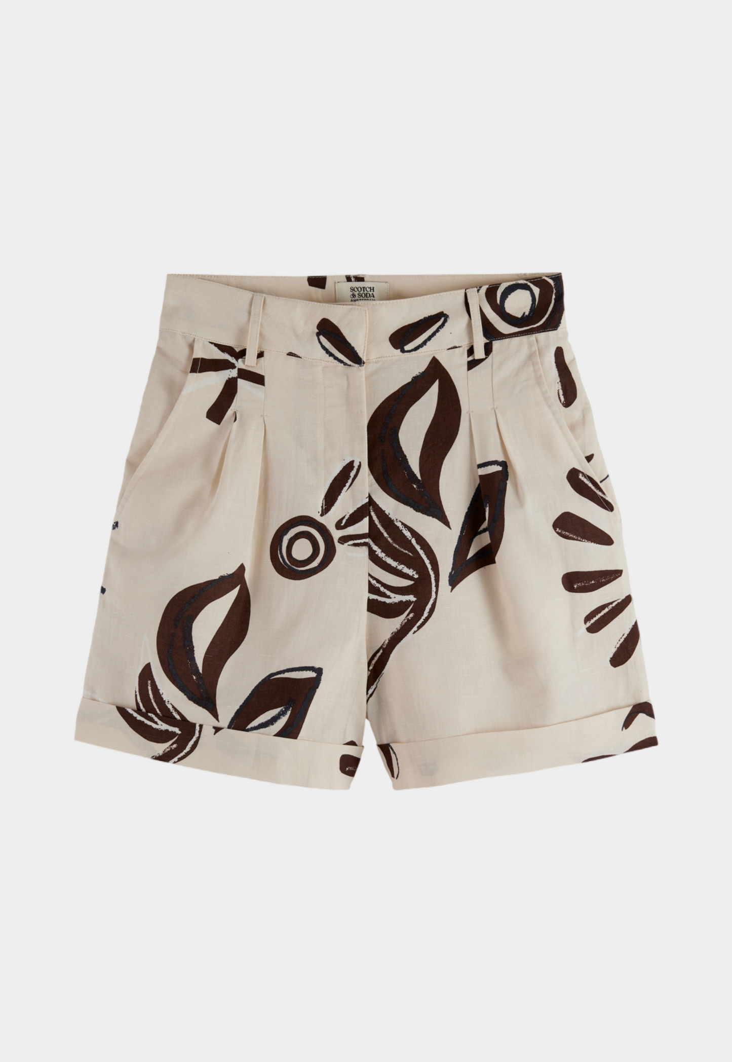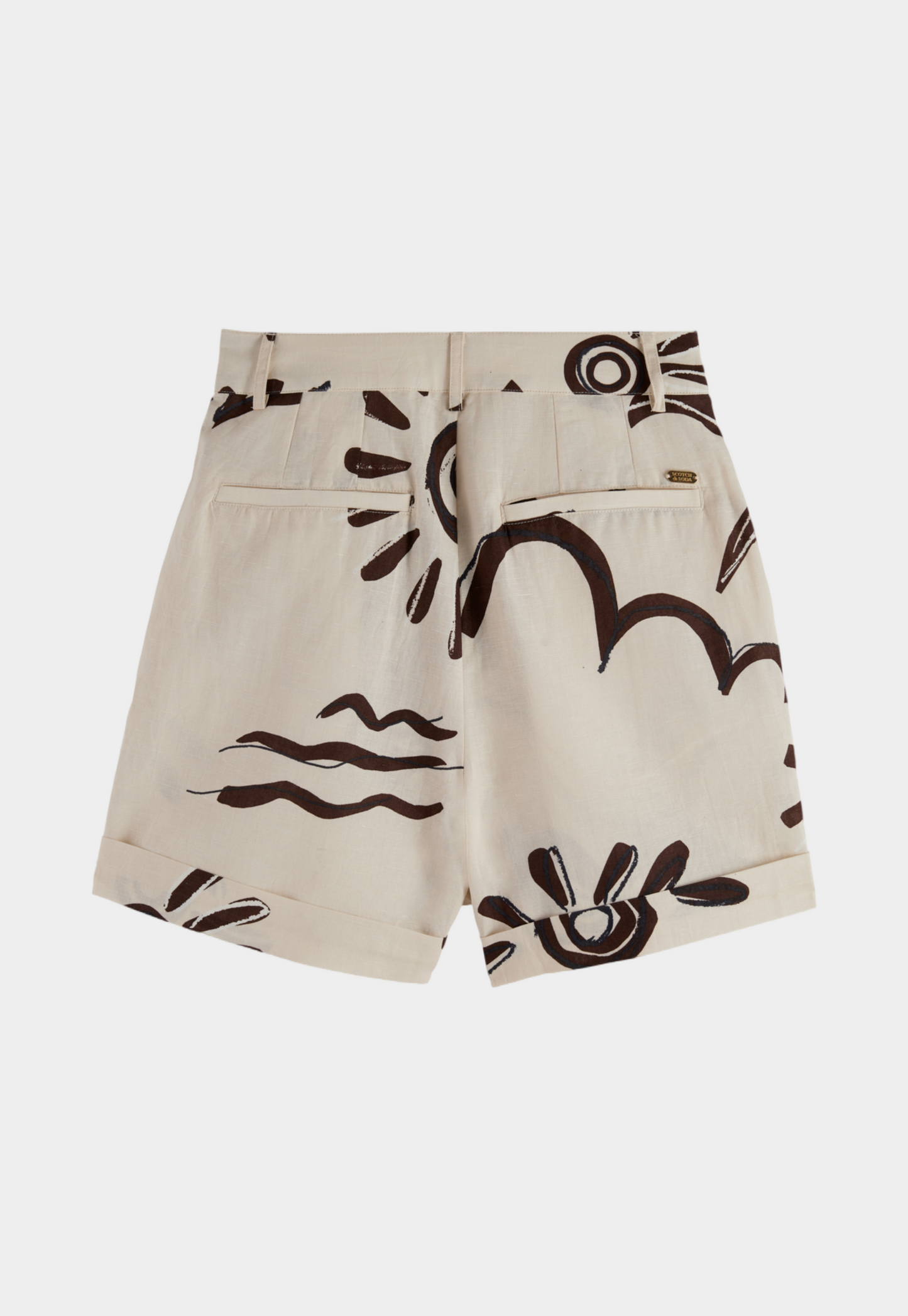 מכנסי פשתן קצרים לנשים מבית המותג סקוצ' אנד סודה. בגזרה משוחררת, עם רוכסן סגירה ושני כיסים קדמיים.