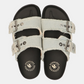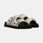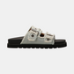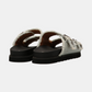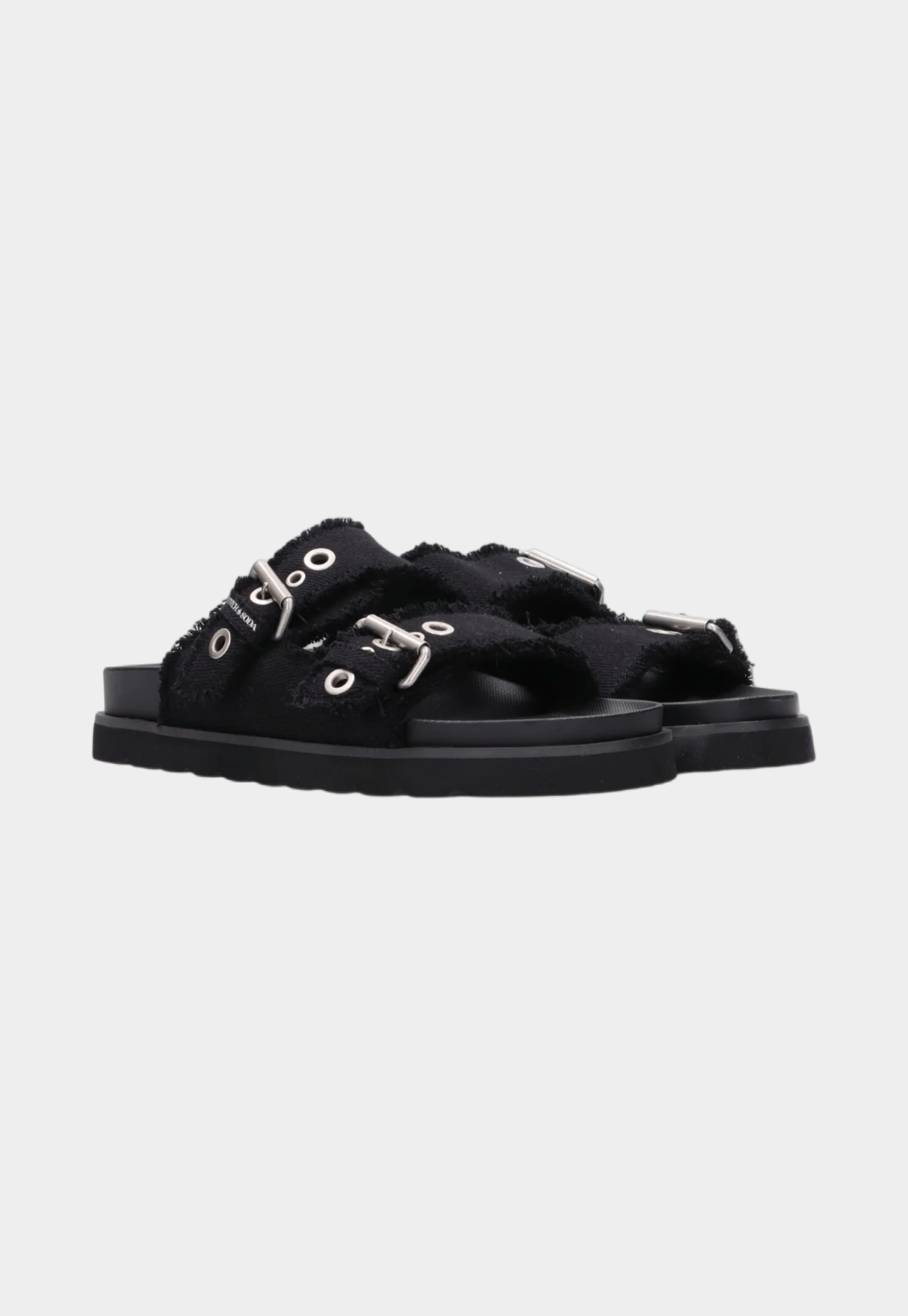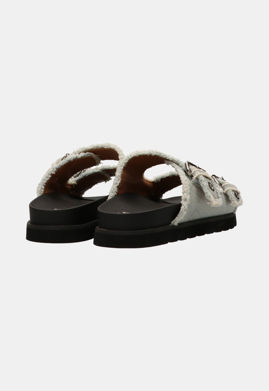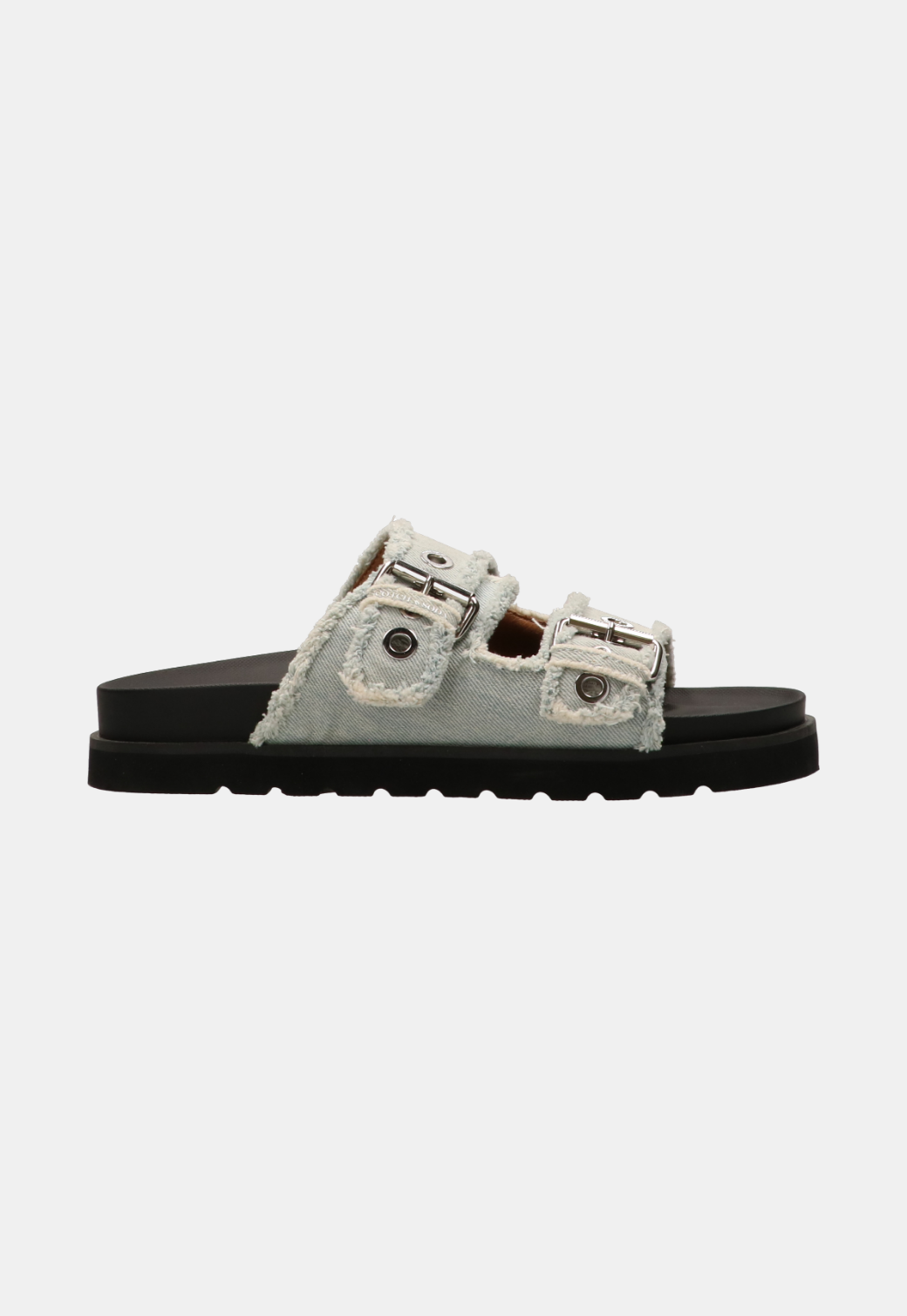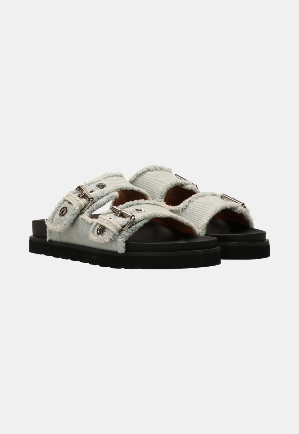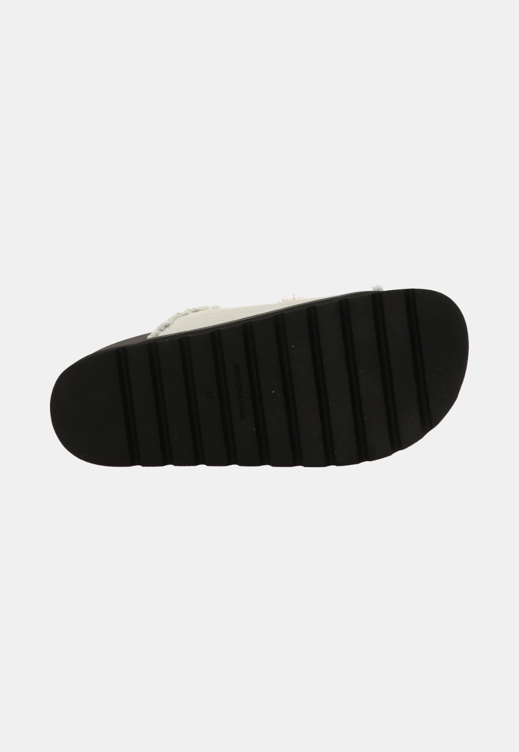 כפכפים לנשים מבית המותג סקוצ' אנד סודה. בגזרה קלאסית עם שתי רצועות רחבות עשויות בד דנים, בשילוב אבזמים. סוליה משוננת מעט גבוהה.