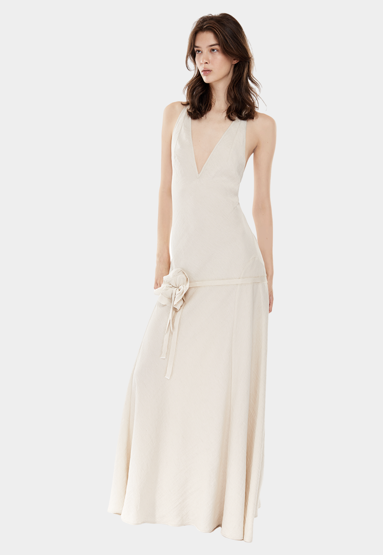 תערובת הבד משלבת פשתן, ויסקוזה ופוליאמיד למראה קליל, מחויט ונעים למגע. הפריט כולל חגורת פרח בשביל אופציית קשירה על המותניים או על הצוואר כדי להוסיף עניין ועומק למראה כולו.