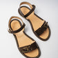עם שתי רצועות ואבזמים היוצרים צורה של שעון חול, צבעים, טקסטורות, וחומרים איכותיים, הסנדל הקלאסי מקבל טוויסט על העיצוב המינימליסטי שמעניק שיק נחשק לפריט הפונקציונלי.