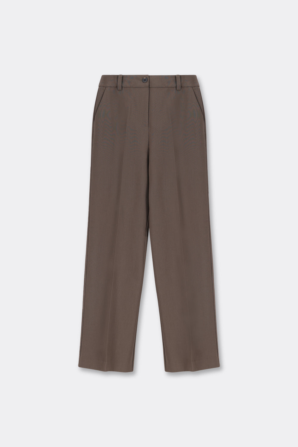 מכנסיים ארוכים לנשים מבית המותג מודסטרום. בגזרה רחבה וגבוהה, עם סגירת רוכסן וכפתור. המכנסיים עשויים מבד דק ואוורירי, עם כיסים.