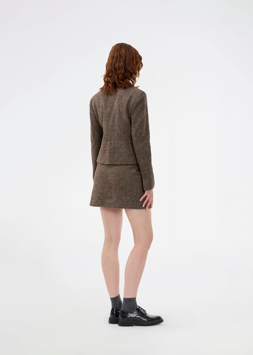 חצאית מיני לנשים מבית המותג מודסטרום, בעיצוב נקי בגוון חום חמים.
