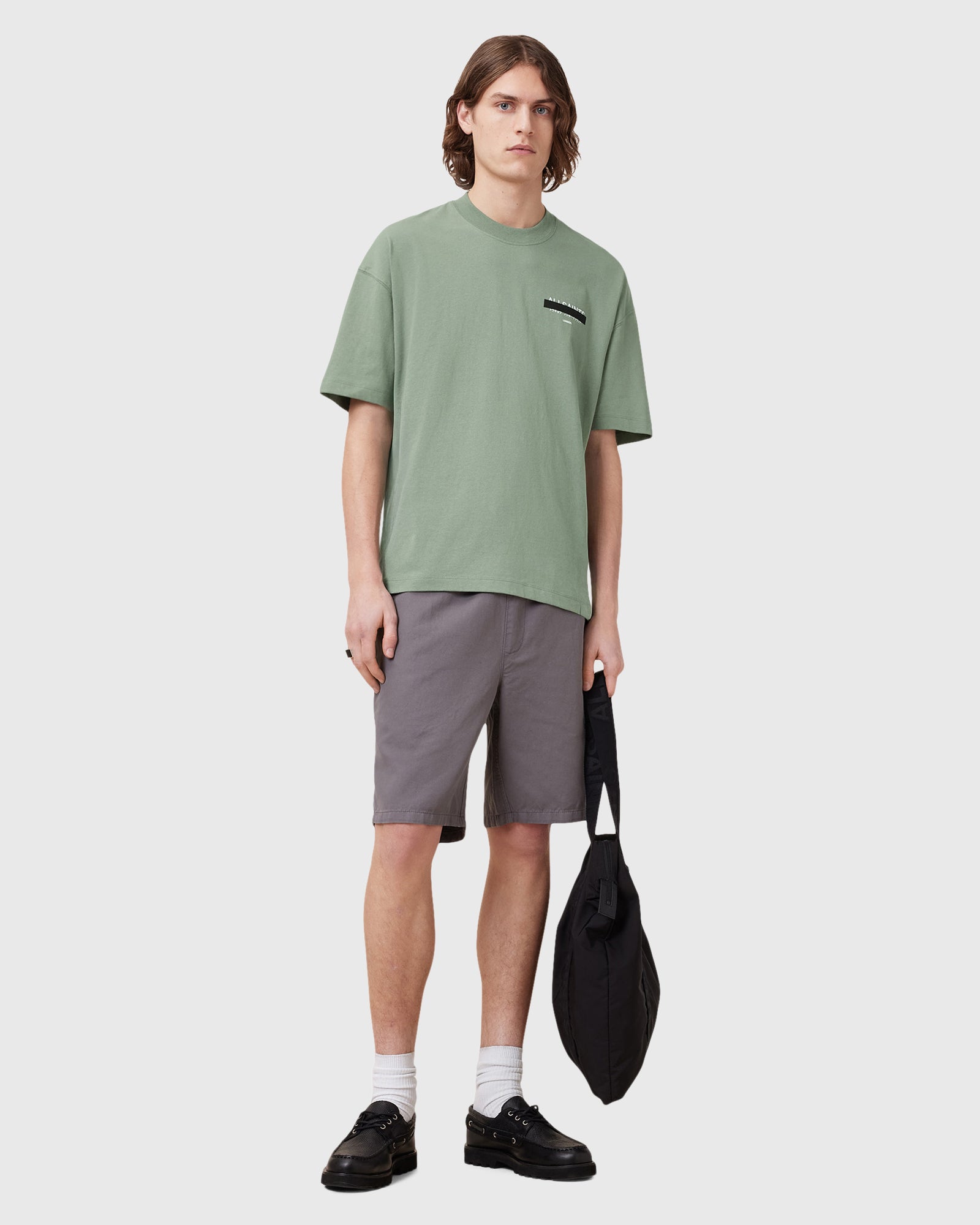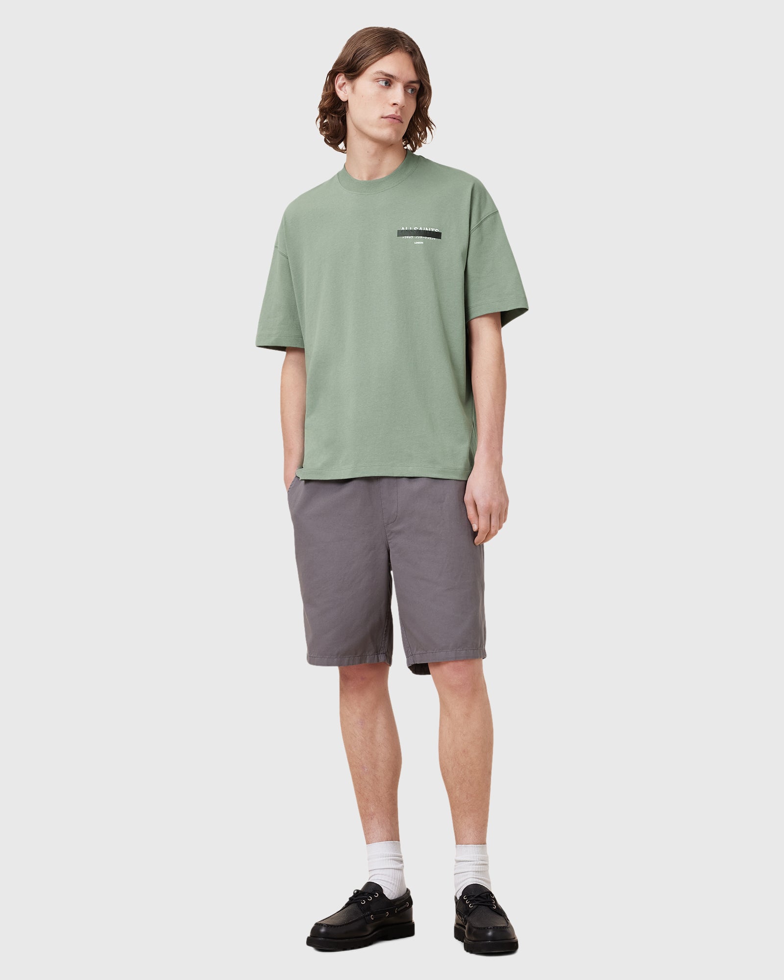 טי שירט קצרה לגברים מבית המותג אולסיינטס. בגזרת אוברסייז עם מפתח עגול ושרוולים קצרים, בשילוב לוגו של המותג בצד החזה ובגב.
