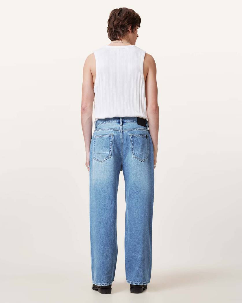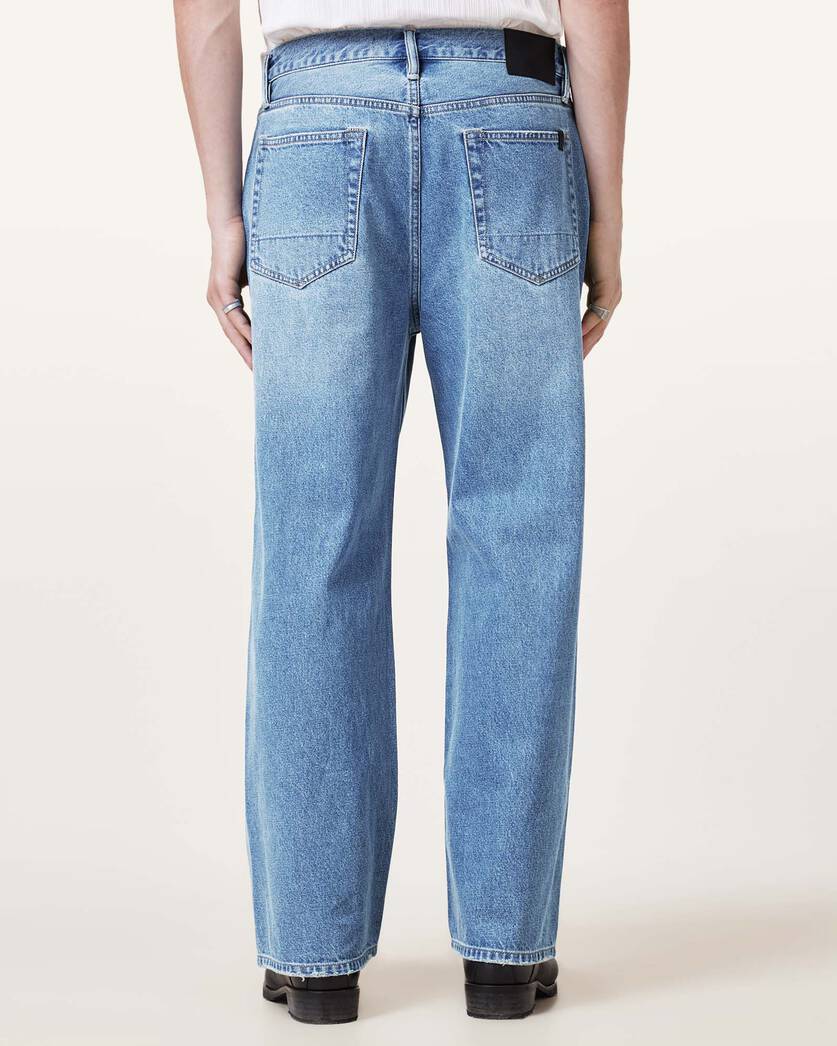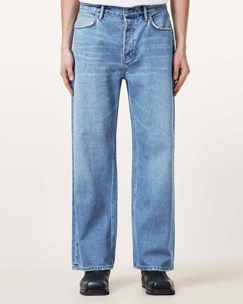 ג'ינס ארוך לגברים מבית המותג אולסיינטס. בגזרה ישרה וגבוהה, עם סגירת רוכסן וכפתורים, וכיסים. עם שטיפה כחולה, ובאורך קרסול.