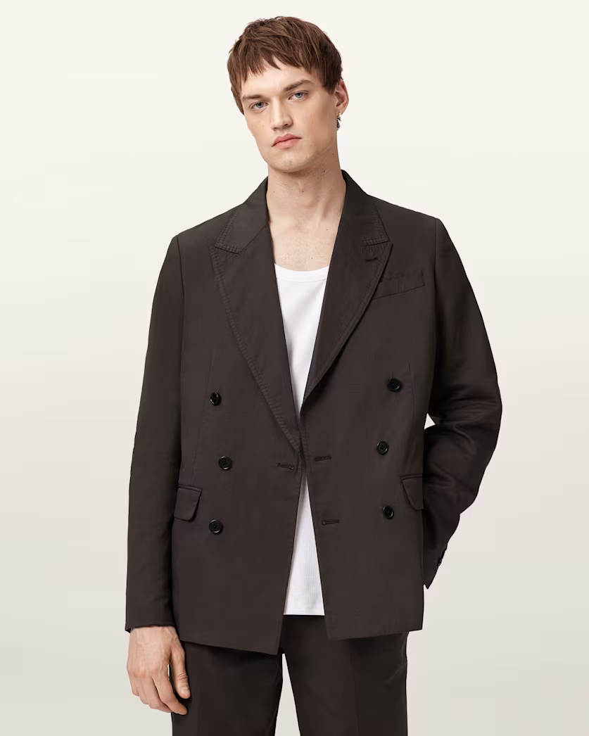 בלייזר לגברים מבית המותג אולסיינטס. בגזרה קלאסית מחויטת, עם כפתורים ושרוולים ארוכים.