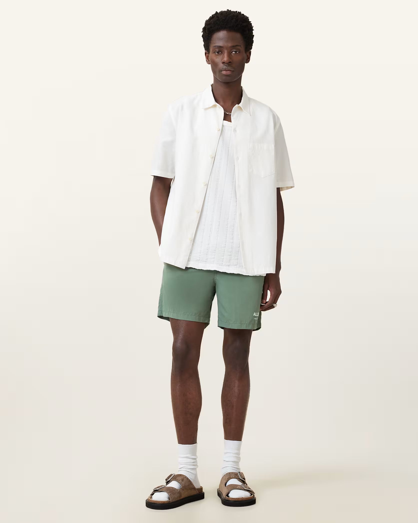 מכנסי בגד ים לגברים מבית המותג אולסיינטס. בגזרה משוחררת באורך מידי, עם גומי במותן וקשירה. שני כיסים קדמיים, בשילוב לוגו של המותג בצד הירך.