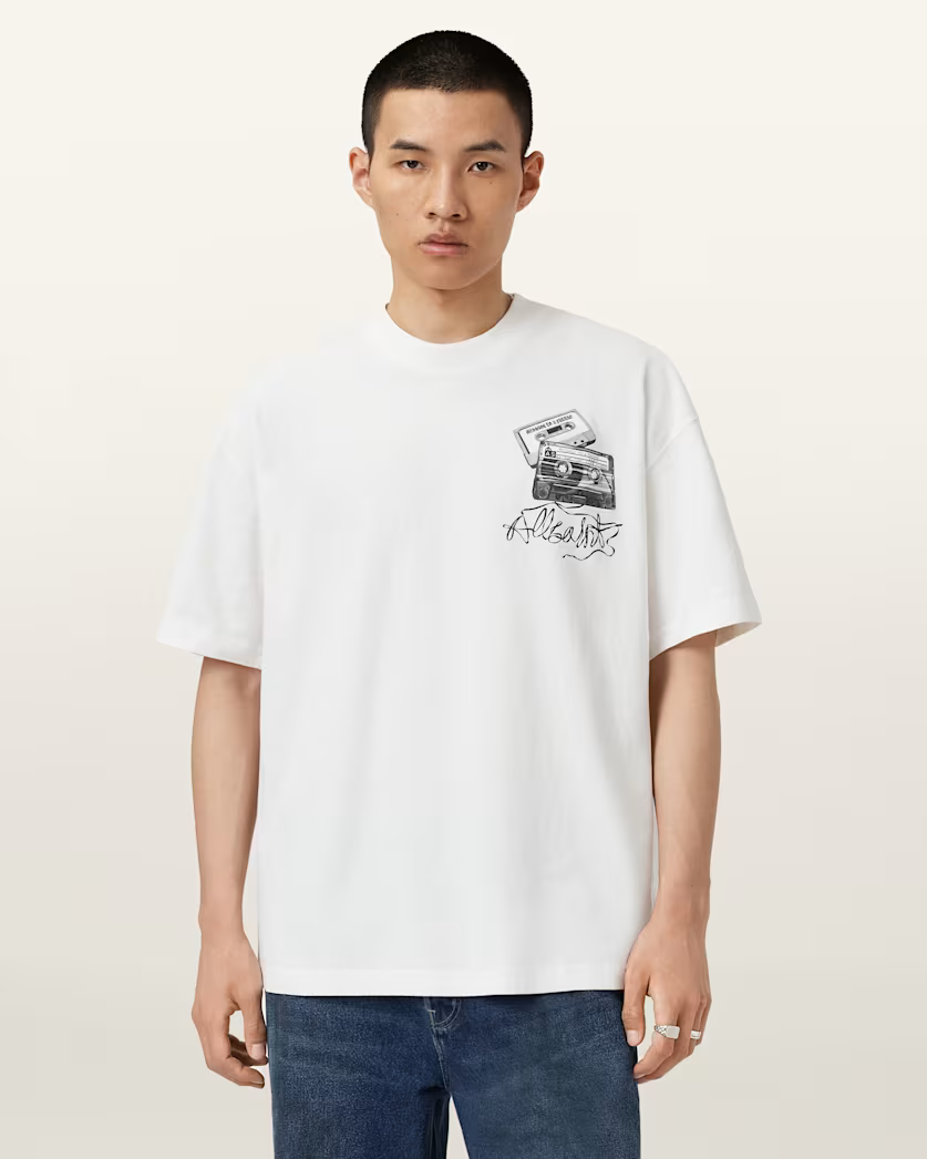 טי שירט קצרה לגברים מבית המותג אולסיינטס. בגזרת אוברסייז עם מפתח עגול, שרוולים קצרים בשילוב לוגו המותג בצד החזה ובגב.